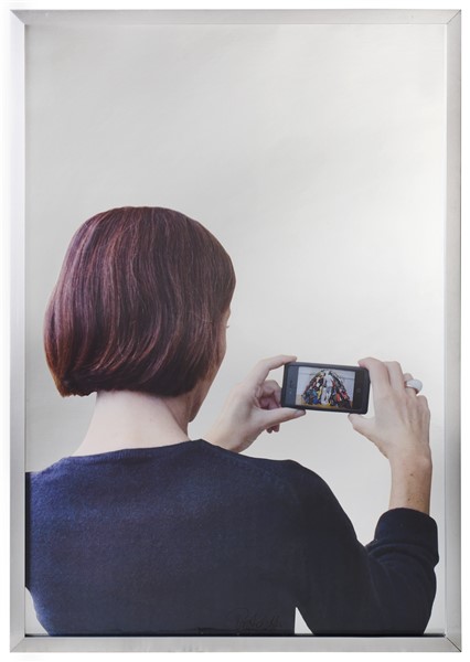 Michelangelo Pistoletto "Donna che fotografa la Venere degli stracci" 2015 offse