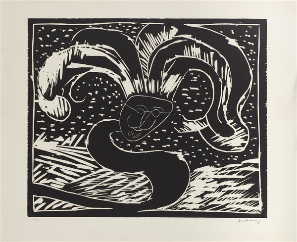 Pierre Alechinsky "Au fil du bois" 1973 due silografie di soggetto diverso cm 63