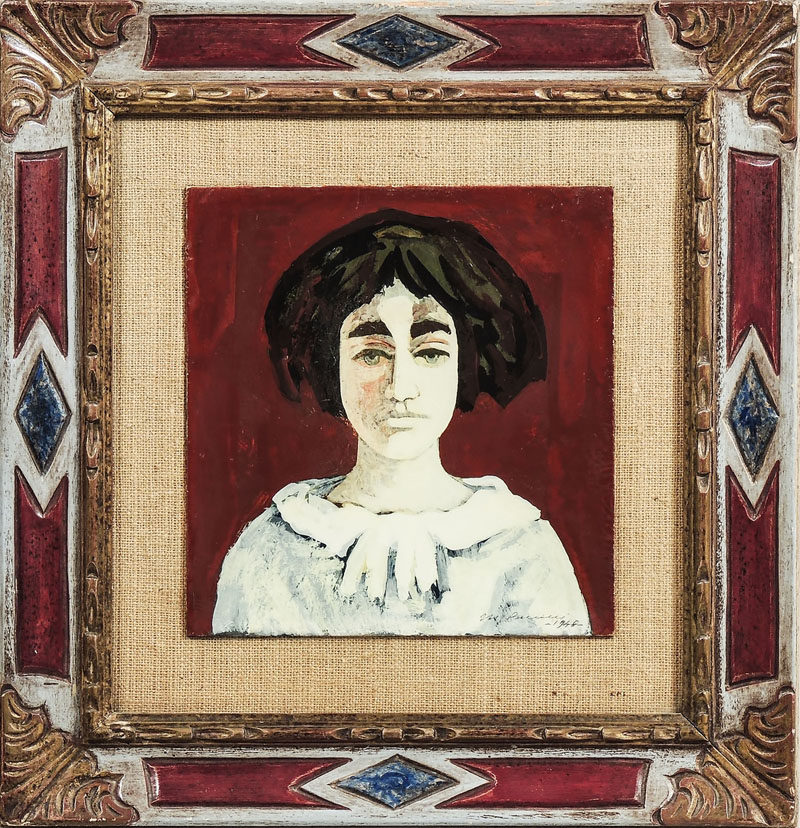 MARCELLO BOCCACI (1914-1996) Simonetta 1948 olio su cartone - oil on cardboard, firmato e datato, al verso firmato, titolato e datato, in cornice cm 24x23 Al verso reca timbro Boccacci Marcello - With stamp on reverse