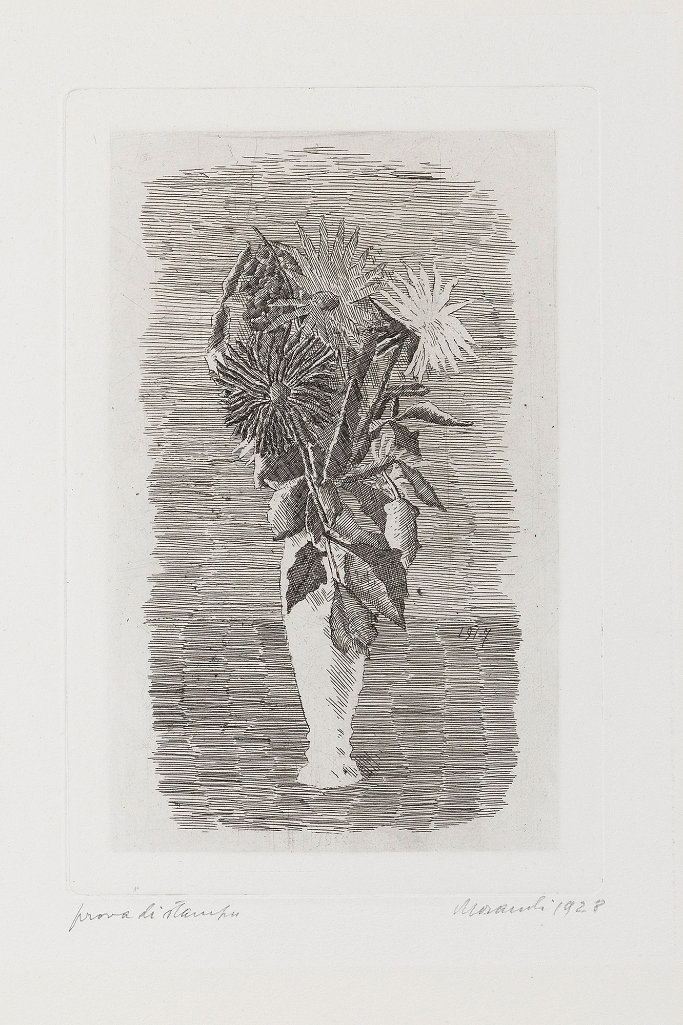 Data in lastra a destra verso il basso: 1917, firma e data a matita sul margine in basso a destra: Morandi 1928, tiratura in basso a sinistra: prova di stampa.