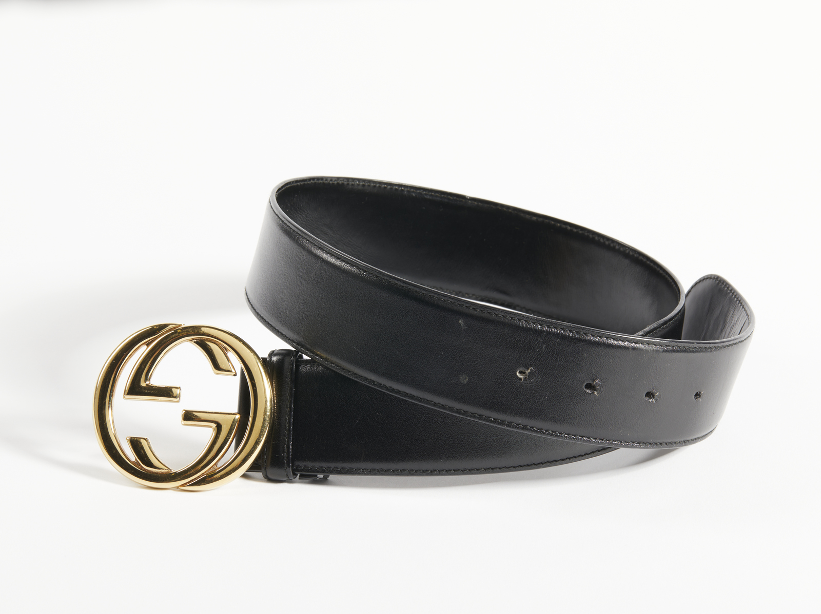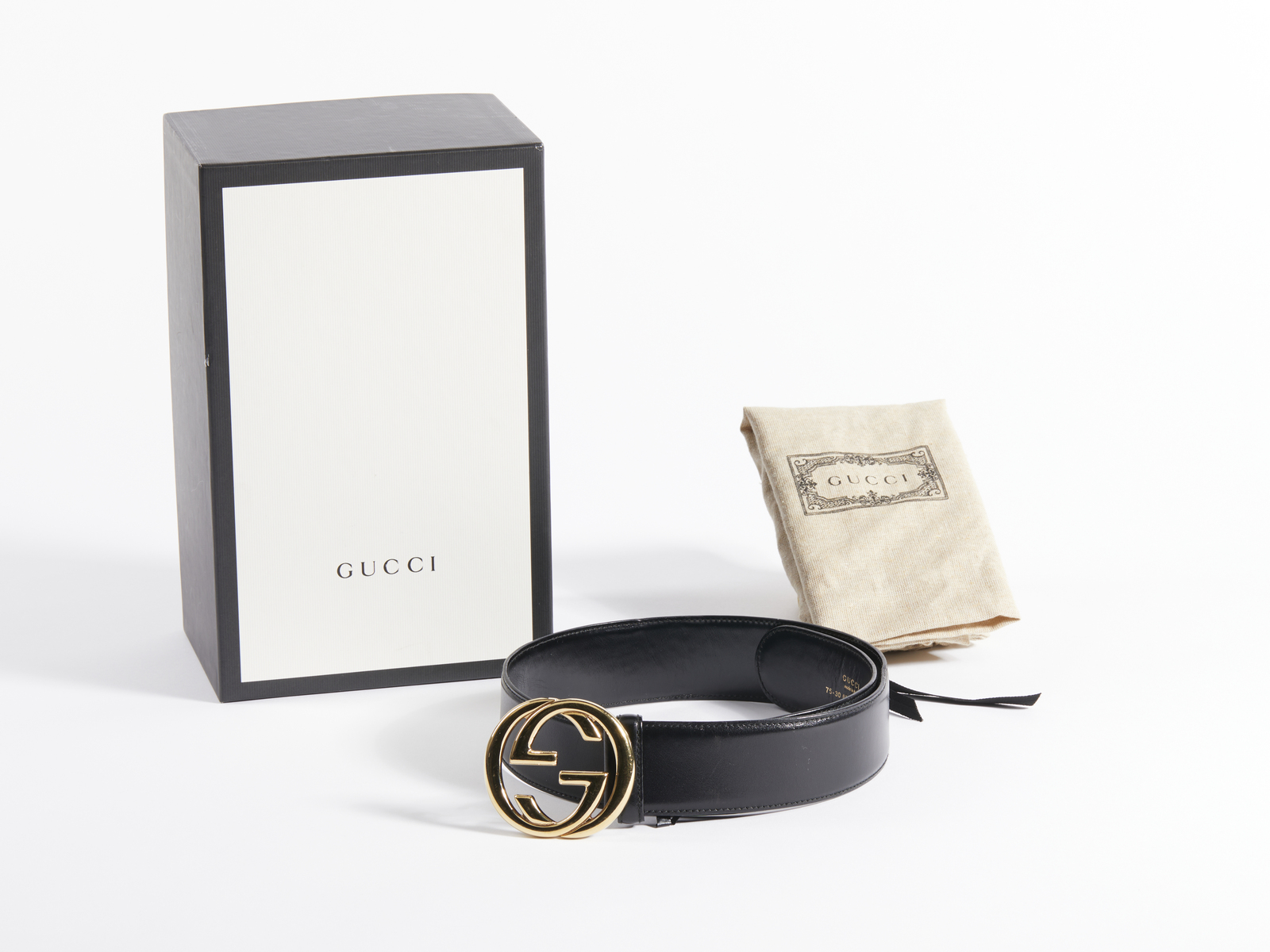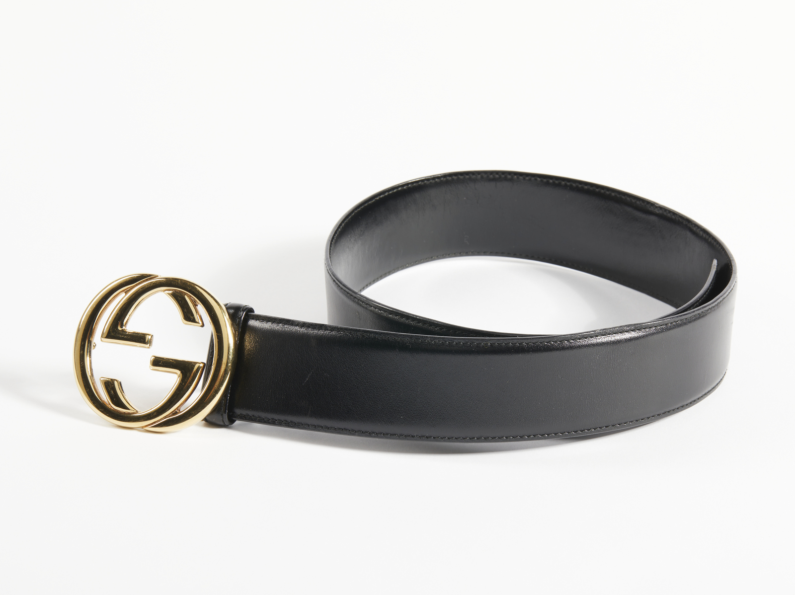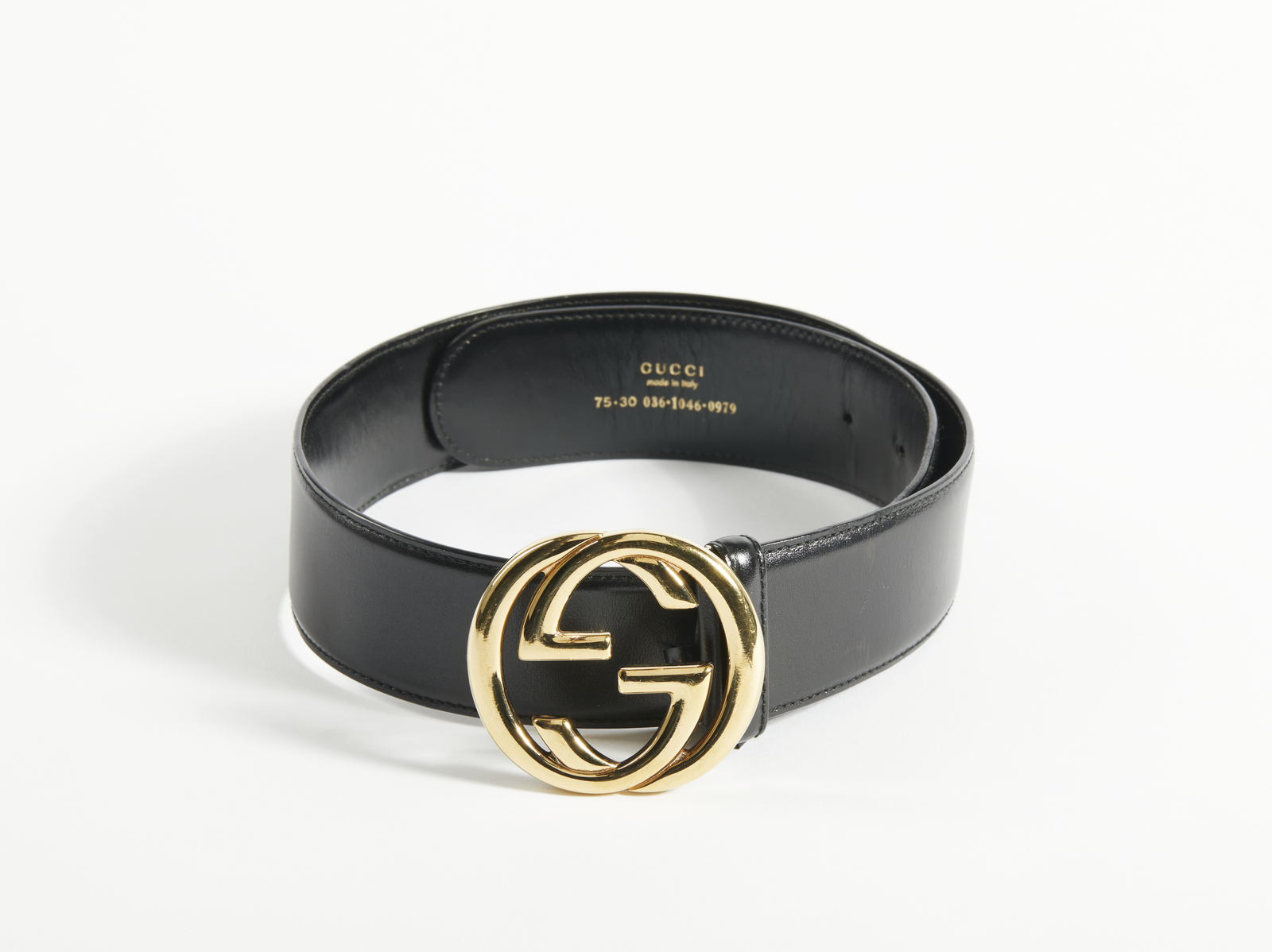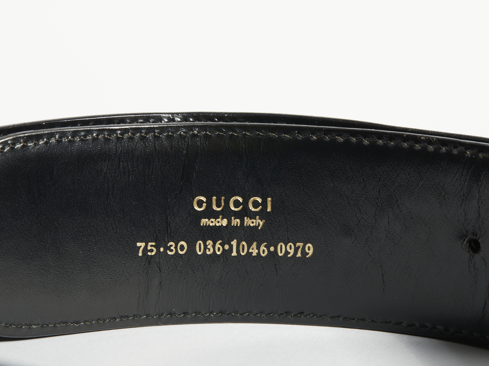 GUCCI Cintura logo. Pelle. Cm 6,50 x 89,50. Cintura logo GG intrecciato in pelle e metallo. Taglia 75.