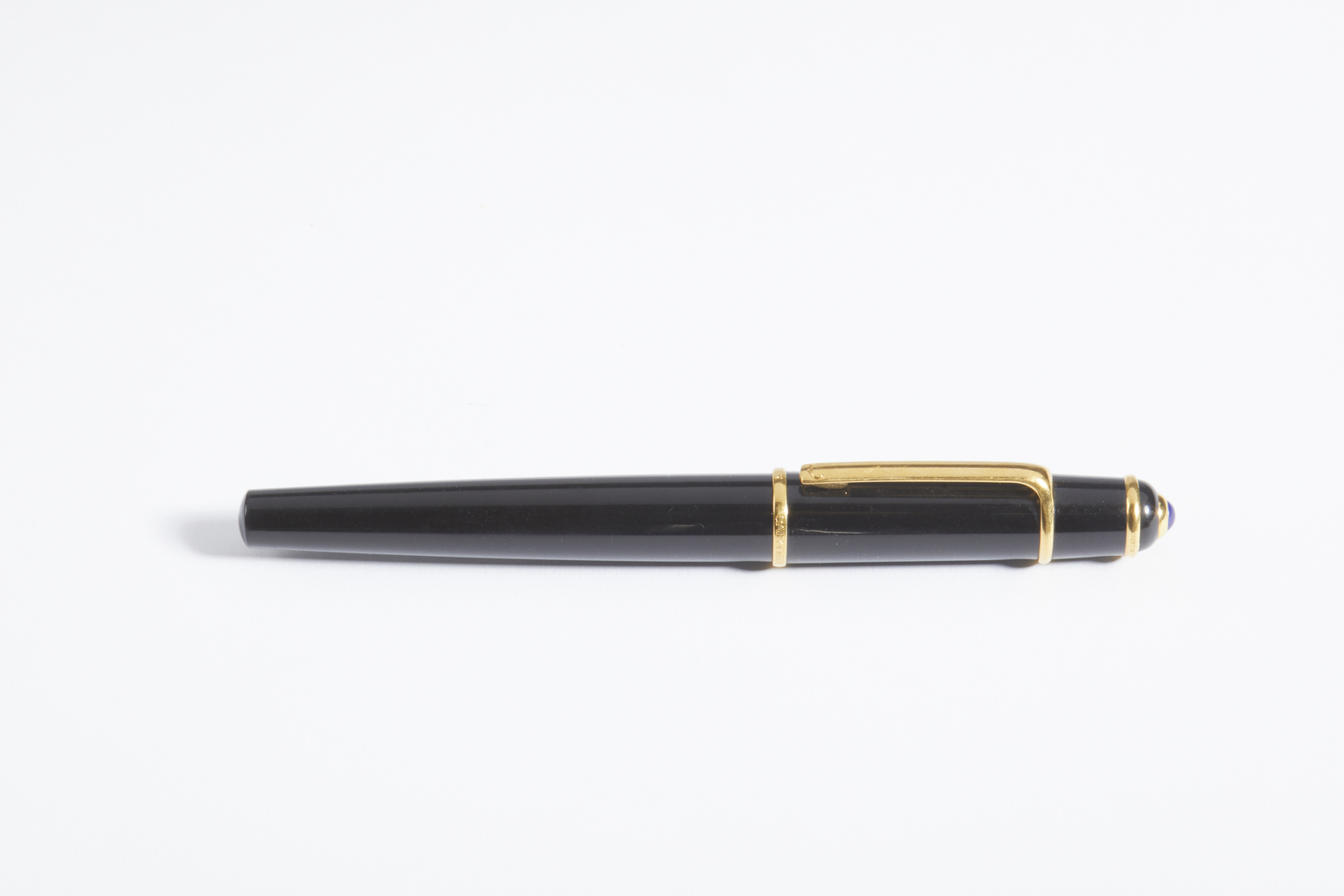 CARTIER Penna Diablo. . . Penna stilografica Diablo, pennino in oro 18k, corpo in resina nera e dettaglio resina blu sul cappuccio.