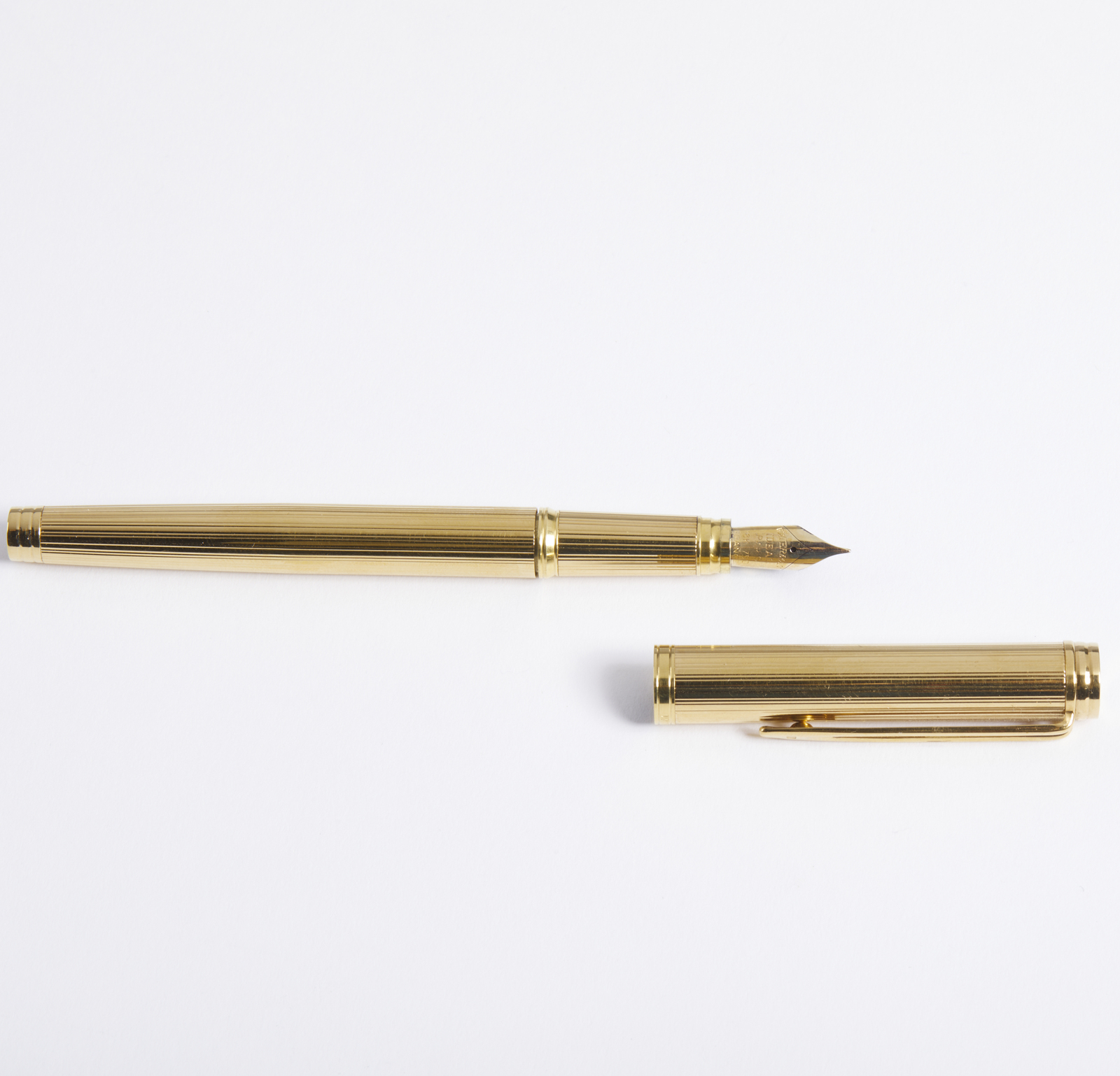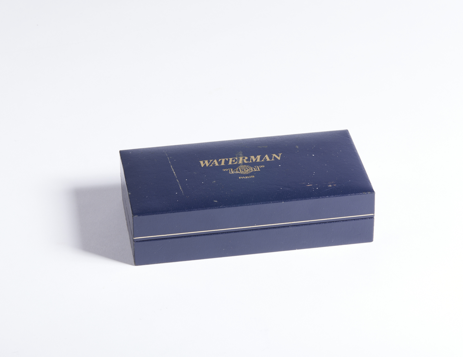 WATERMAN PARIS Penna . . . Penna stilografica modello ideal placcata d'oro 18k , pennino f, completa di custodia e 6 cartucce in scatola da 8.