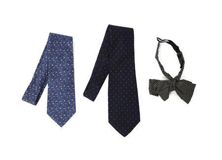 AUTORI VARI Cravatte e papillon. Seta. Cm 10,00 x 149,00. Set composto da autori diversi: cravatta Marinella, cravatta Salvatore Ferragamo e papillon Gucci