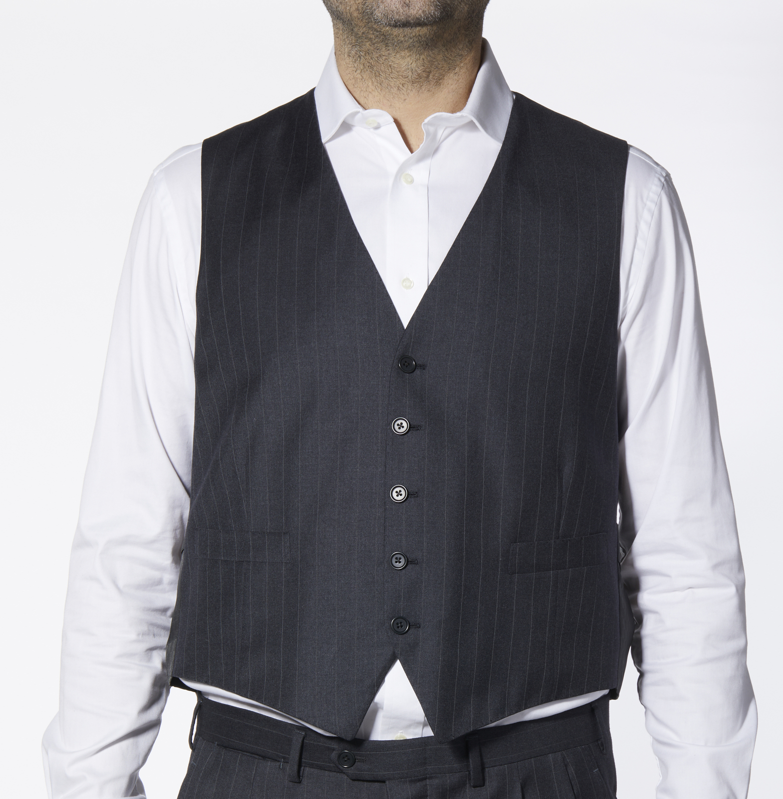 BATTISTONI Completo da uomo. Tessuto.. . Completo da uomo composto da una giacca, un gilet e due paia di pantaloni. Colore grigio gessato.