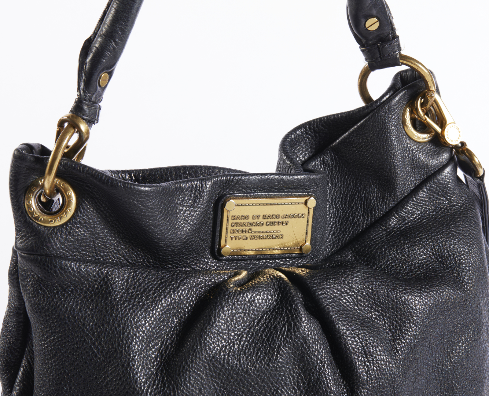 JACOBS MARC Borsa nera monospalla. Pelle. Cm 35,00 x 34,00 x 7,00. Borsa nera a spalla con tracolla. Logo sul fronte. Hardware color oro.