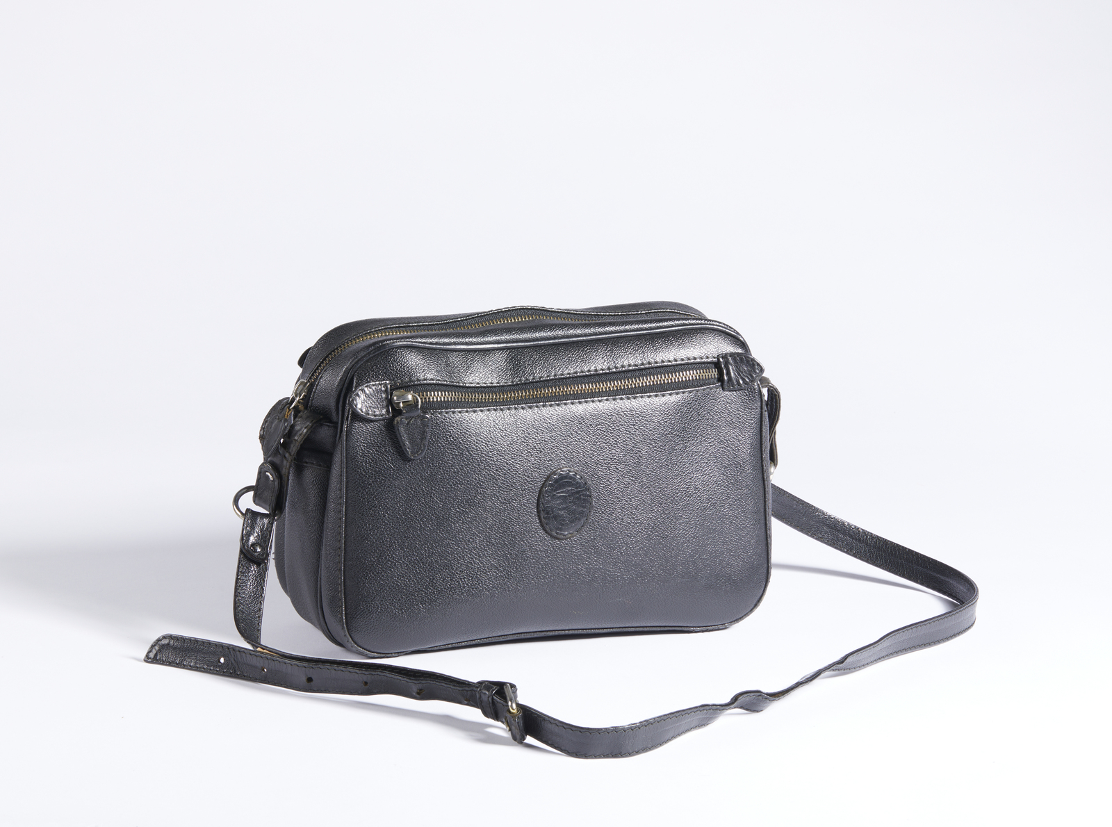 TRUSSARDI (n. 1911) - Borsa a spalla di pelle nera.