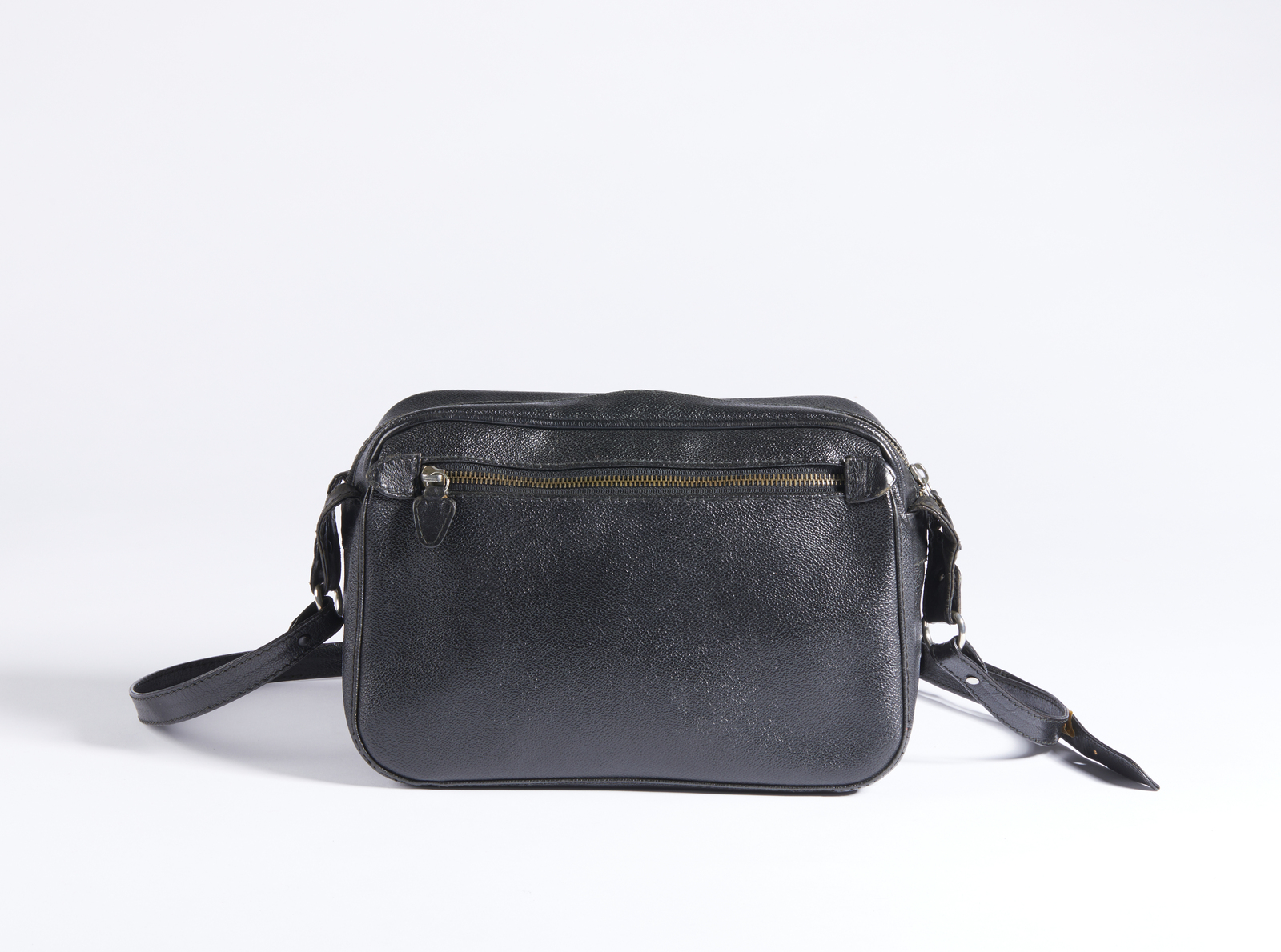 TRUSSARDI (n. 1911) Borsa a spalla di pelle nera. Pelle. Cm 28,00 x 19,00 x 10,00. Borsa a spalla pelle nera, chiusura a zip e tasca frontale e retrostante.