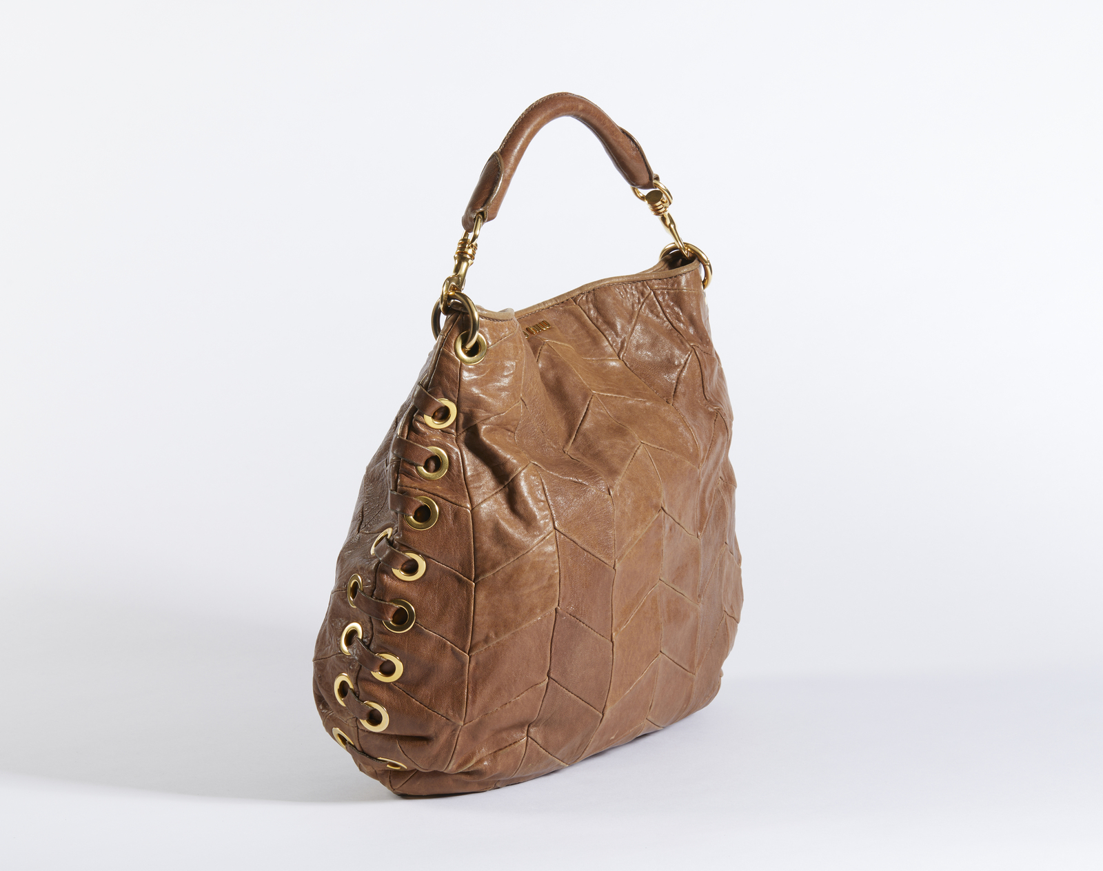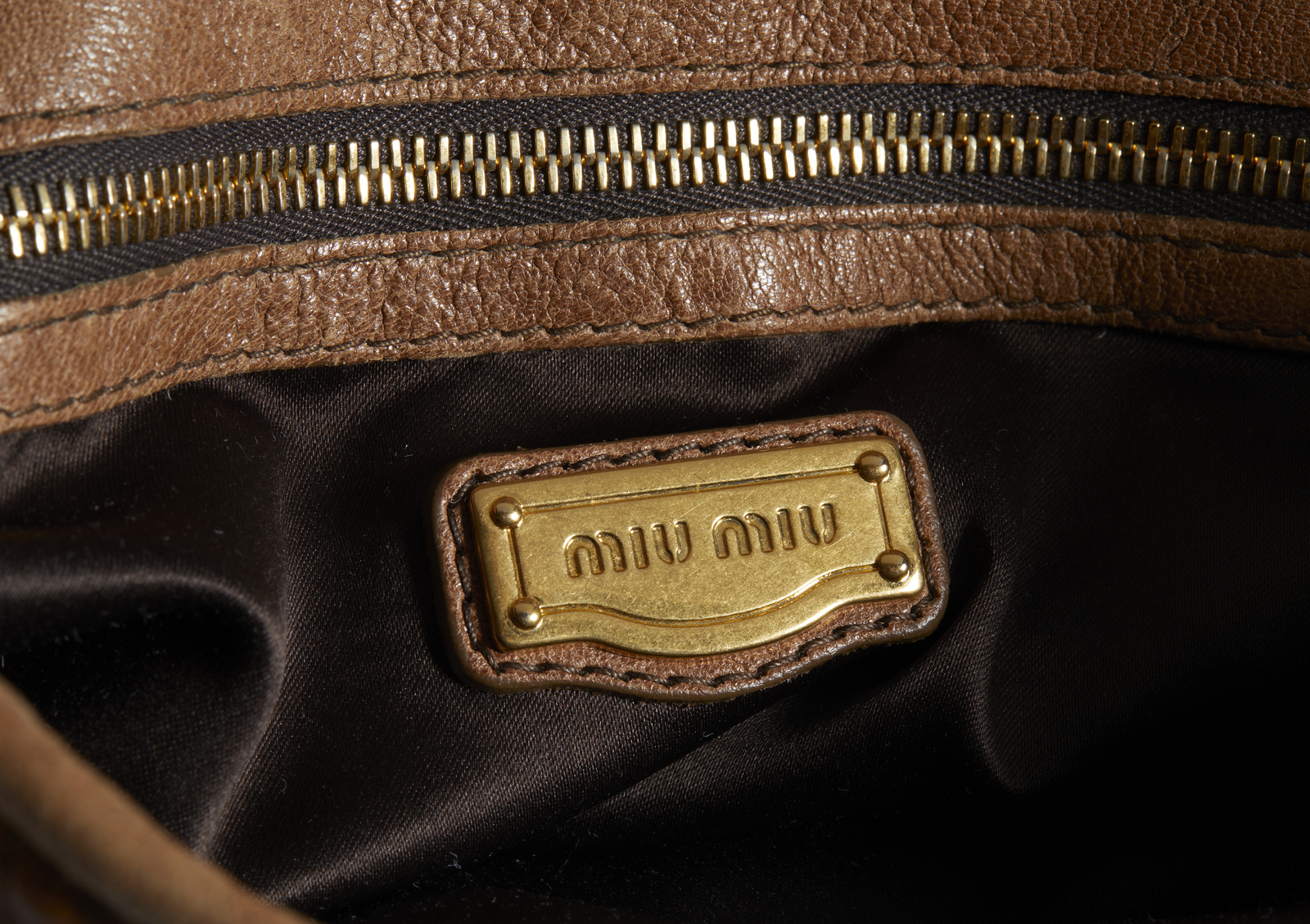 MIU MIU Borsa marrone a spalla. Pelle. Cm 34,00 x 38,00 x 10,00. Borsa in pelle marrone a spalla e con tracolla. Logo Miu Miu sul fronte, tasca interna con zip.