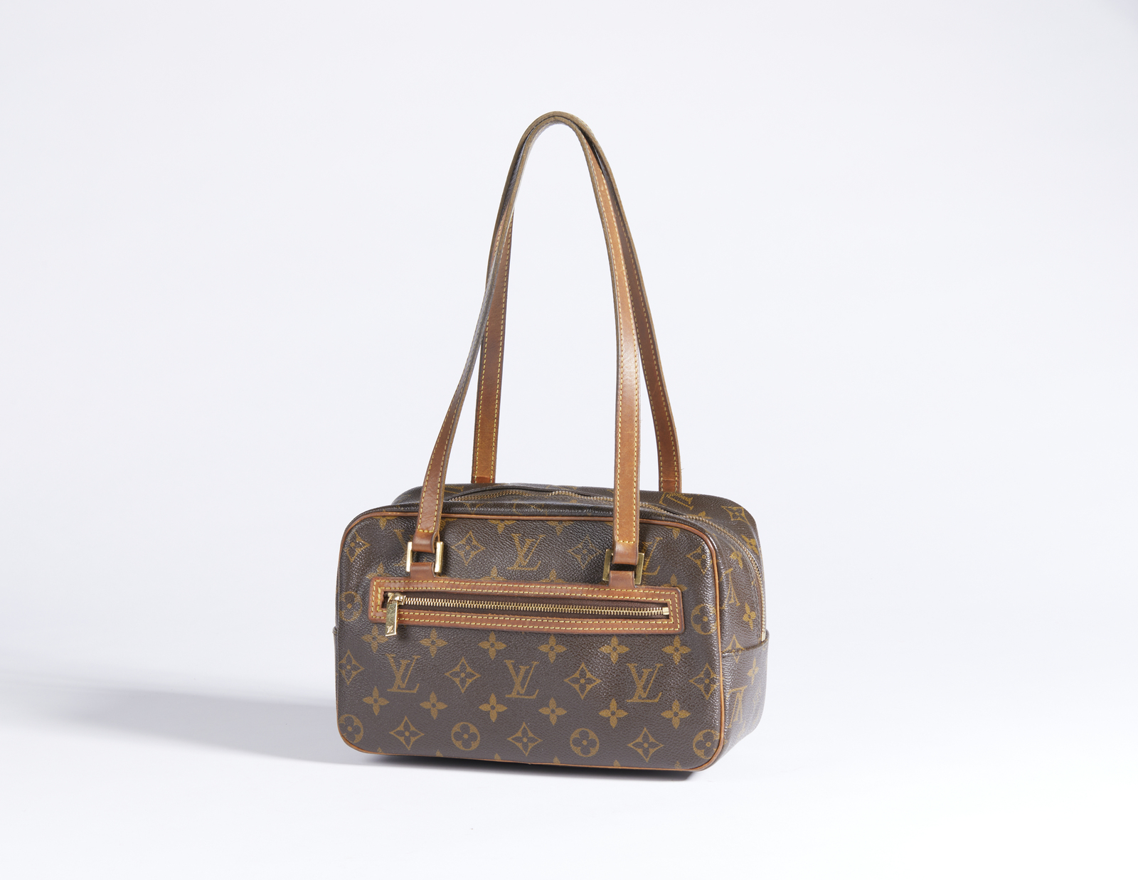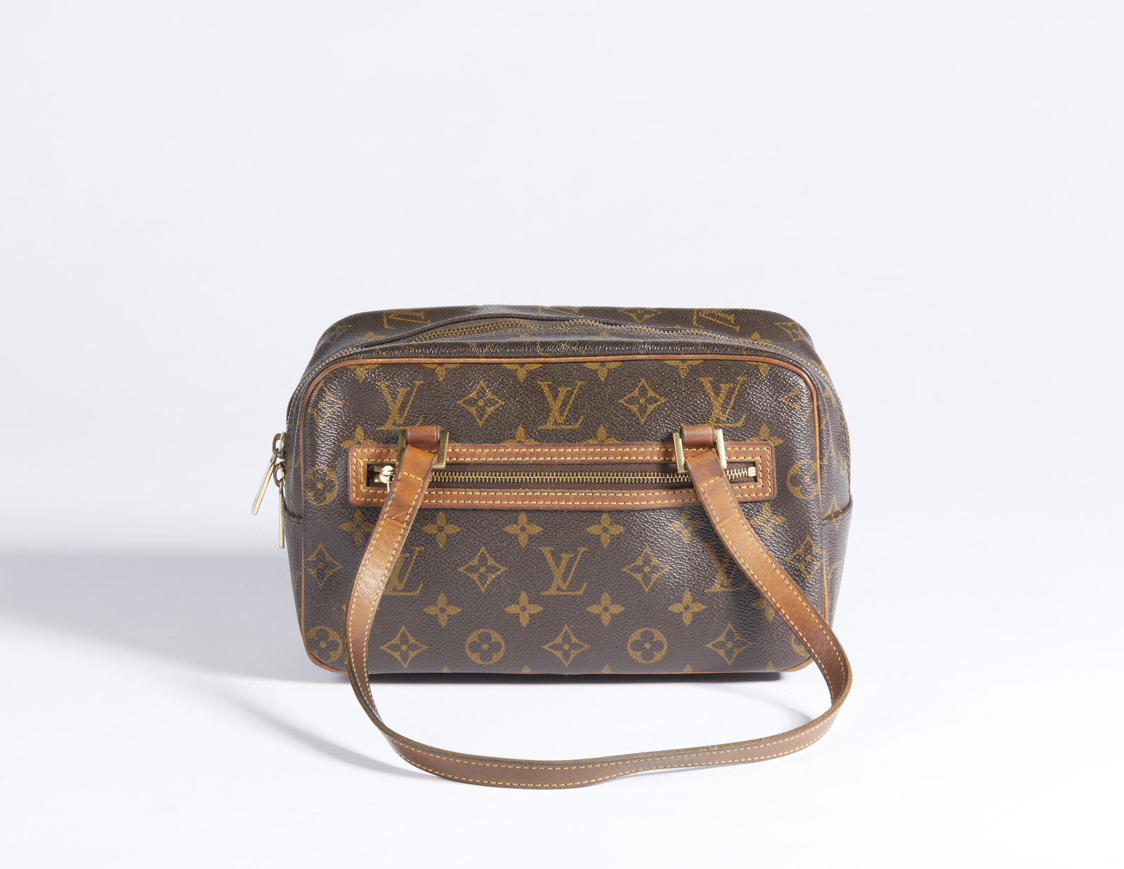 VUITTON LOUIS Borsa a spalla. Tela. Cm 26,00 x 17,00 x 11,00. Borsa a spalla in tela monogram, inserti in pelle, chiusura a zip e tasca frontale.
