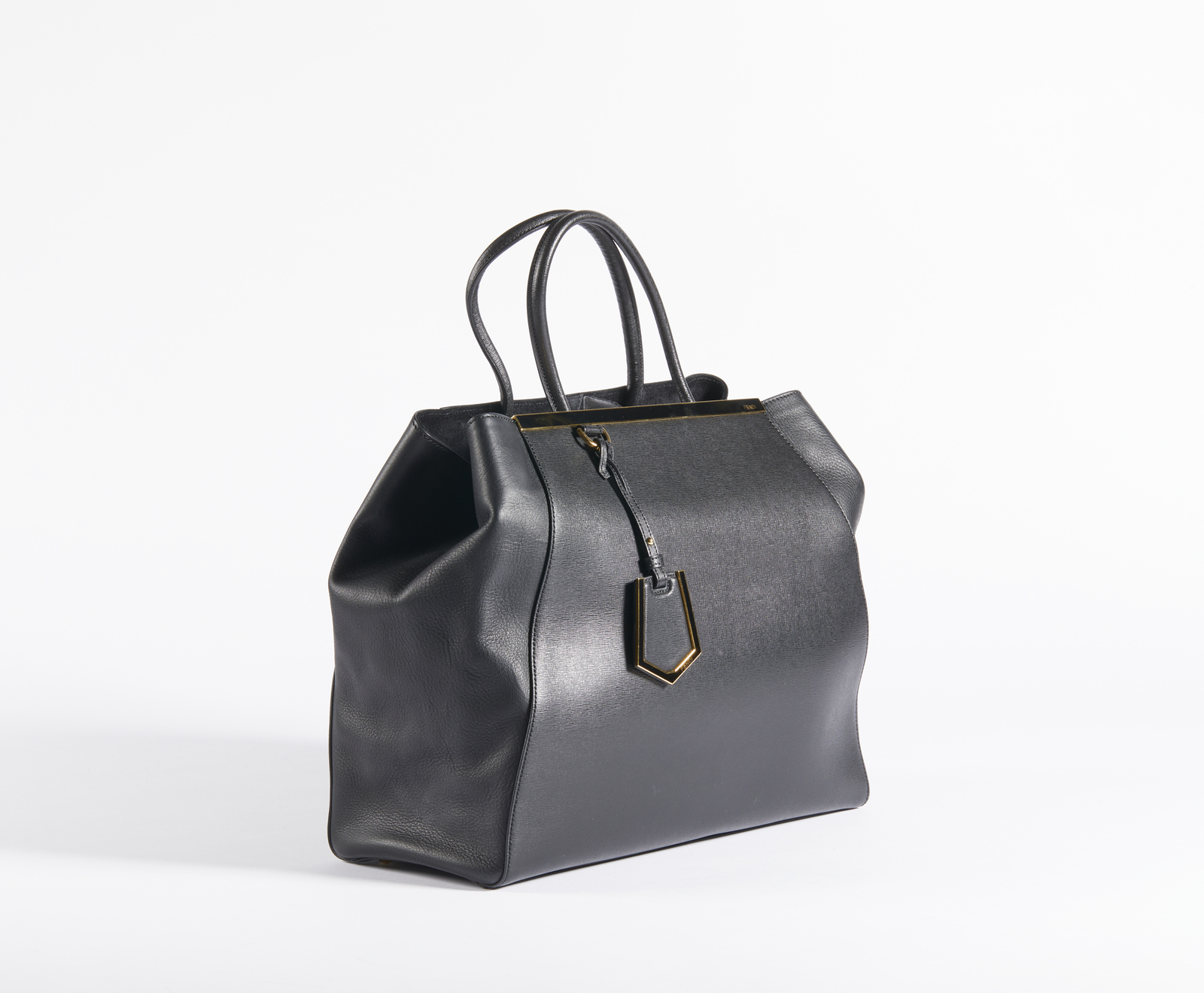 FENDI Borsa in pelle nera. Pelle. Cm 38,50 x 33,00 x 16,00. Borsa in pelle nera a mano. Chiusura con bottone, hardware color oro. Tasca interna.