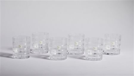 DIOR CHRISTIAN (1905 - 1957) Set bicchieri Dior. Vetro.. Cm 8,00 x 9,50. Set di sei bicchieri Dior in vetro con firma incisa al retro della base, etichetta sul fronte.