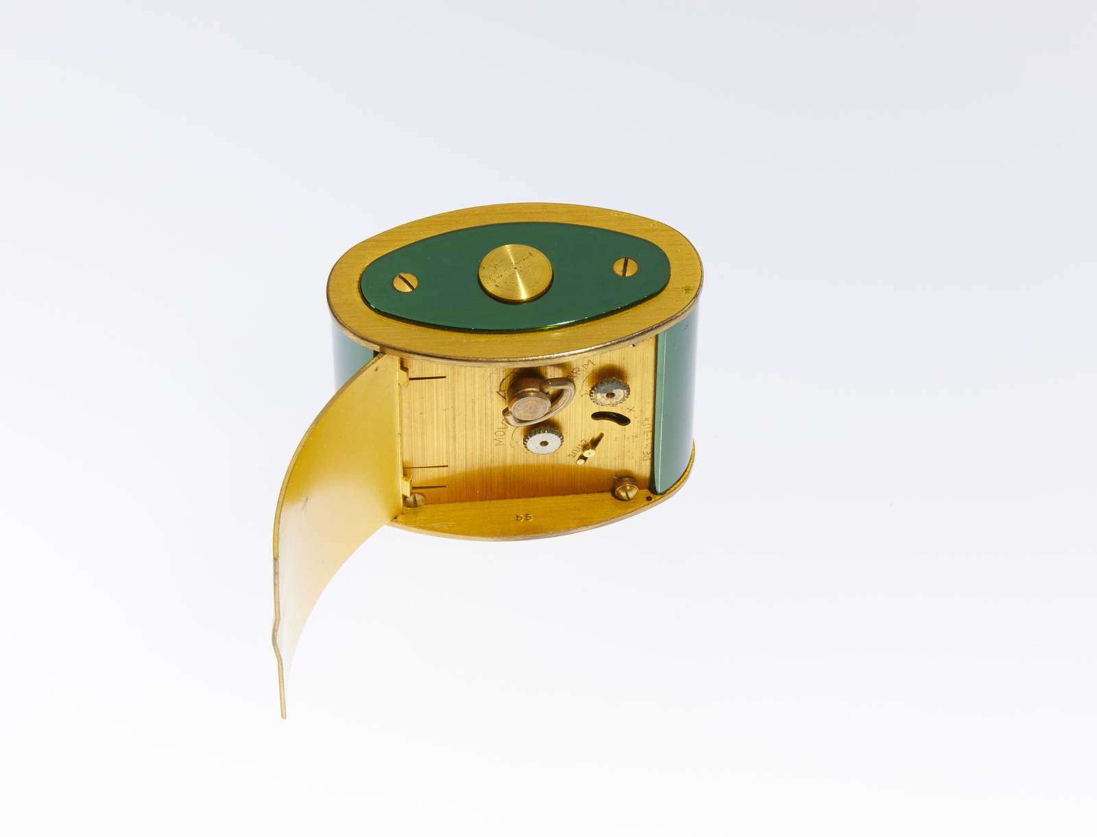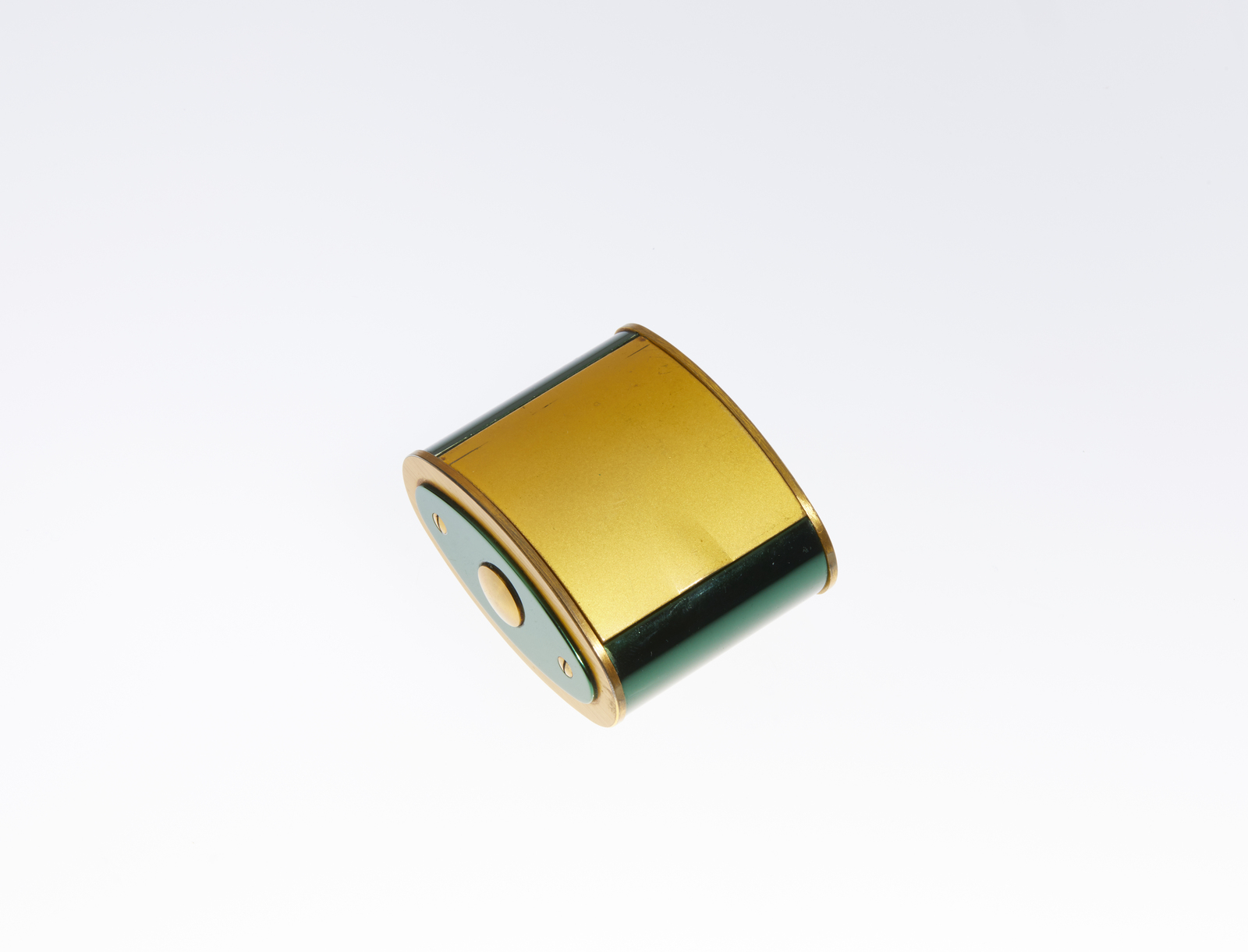 JAEGER-LECOULTRE Orologio da tavolo. . Cm 5,00 x 6,00 x 3,50. Orologio da tavolo in metallo dorato e smalto verde con custodia originale. Marchio sul quadrante