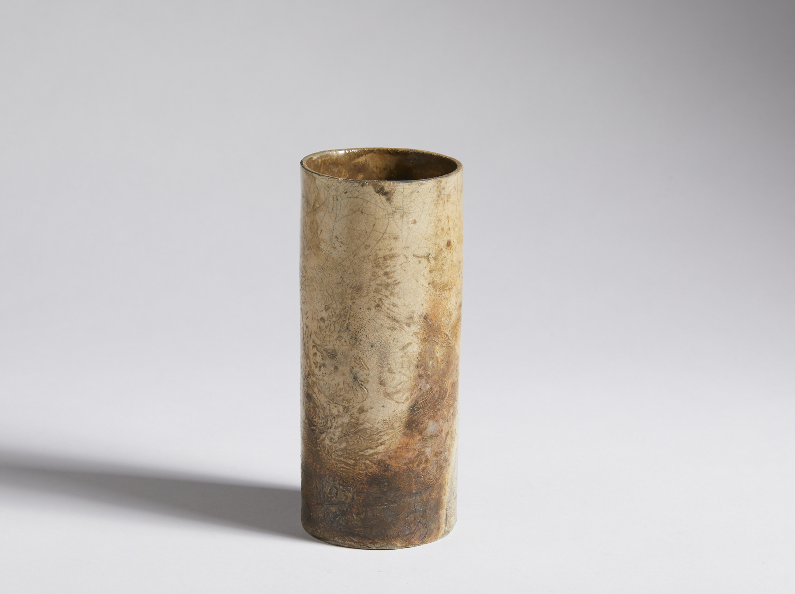 GIORGIO ARMANI (n. 1934) Vasetto Armani. Ceramica smaltata.. Cm 8,00 x 18,00. Vaso Armani in ceramica smaltata con marchio al retro della base
