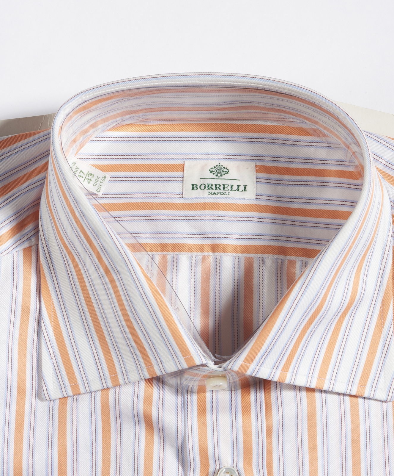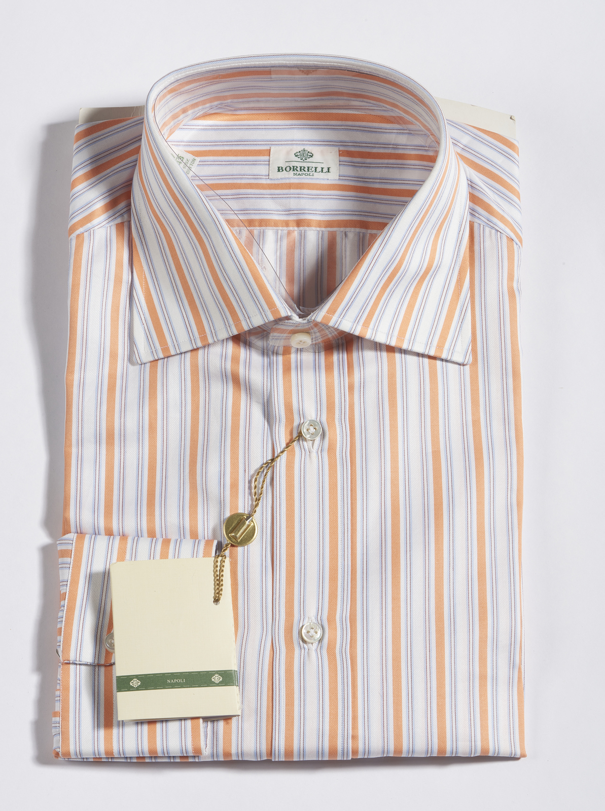 BORRELLI Camicia a righe. Cotone. . Camicia a righe arancione, azzurre e bianche a maniche lunghe.