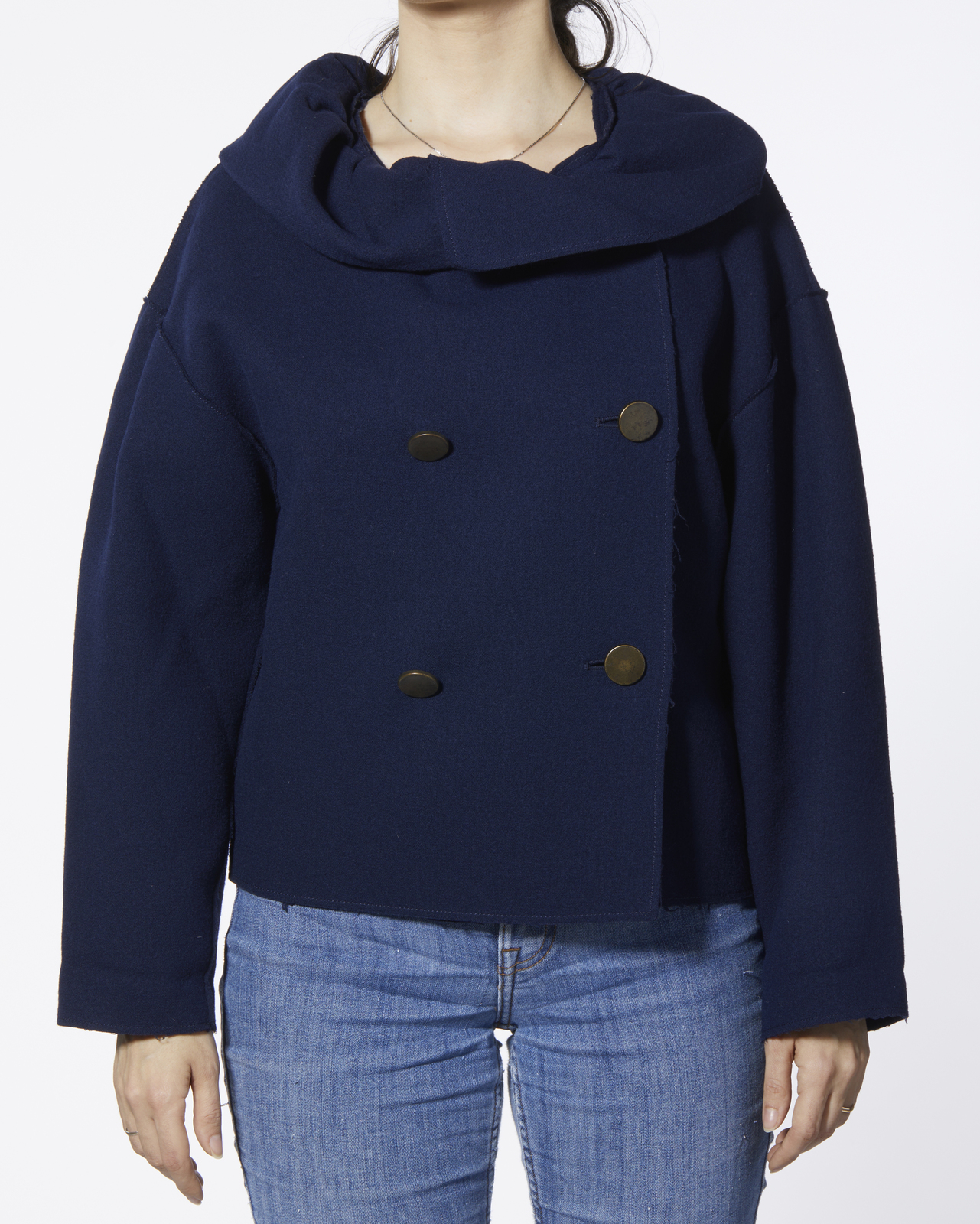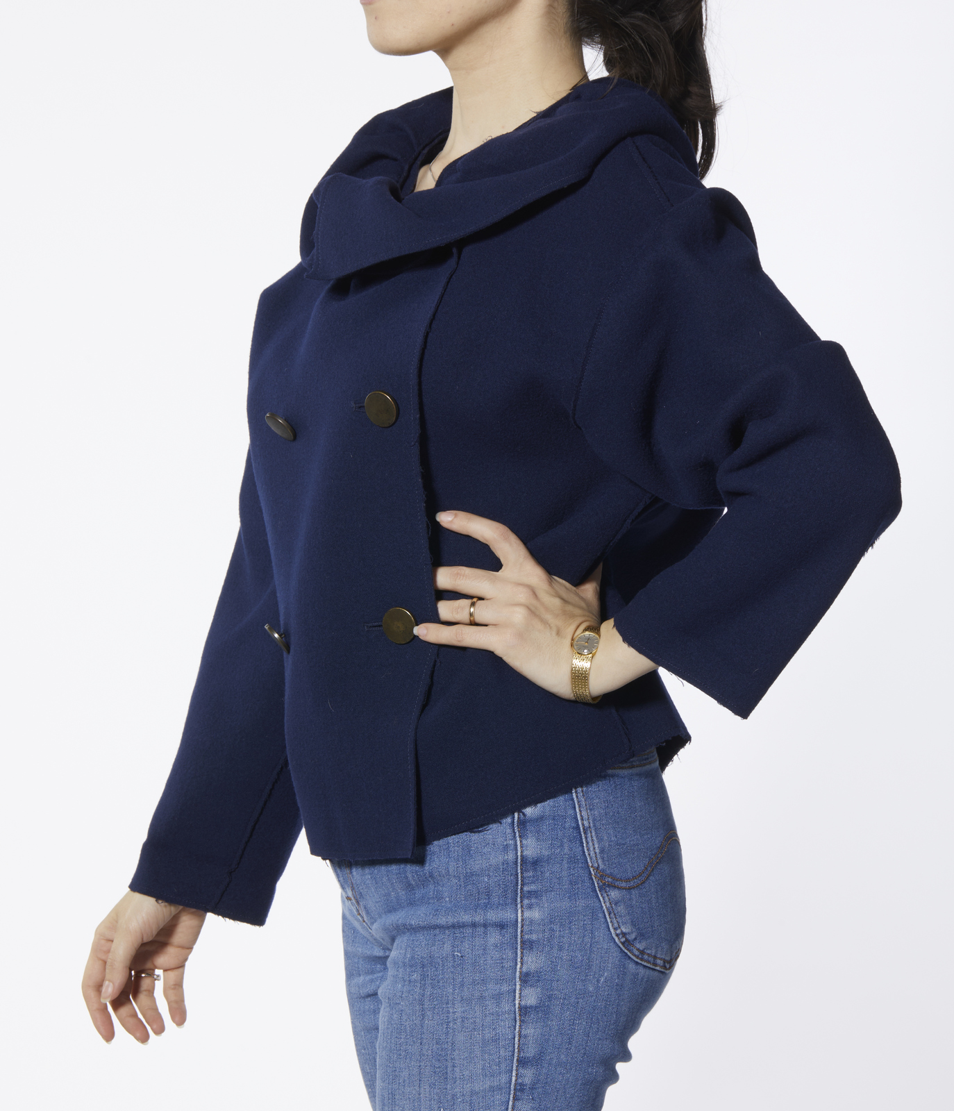 LANVIN Giacca Lanvin. lana. . Giacca Lanvin blu in lana con girocollo e manica a trequarti, chiusura a doppiopetto.