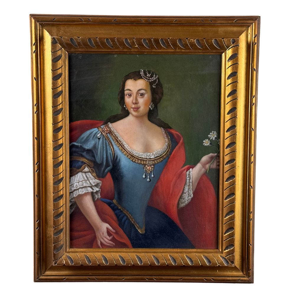 Dipinto olio su tela applicata su tavola, periodo XX secolo scuola Italiana, raffigurante Ritratto di donna. Dimensioni interno cornice: 35x46 cm. Dimensioni compreso cornice: 50x60. Da artista anonimo. Opera in buone condizioni.
