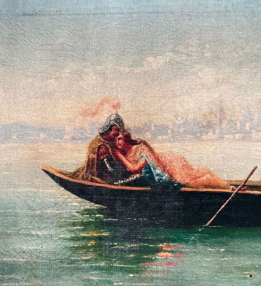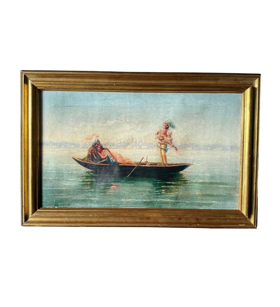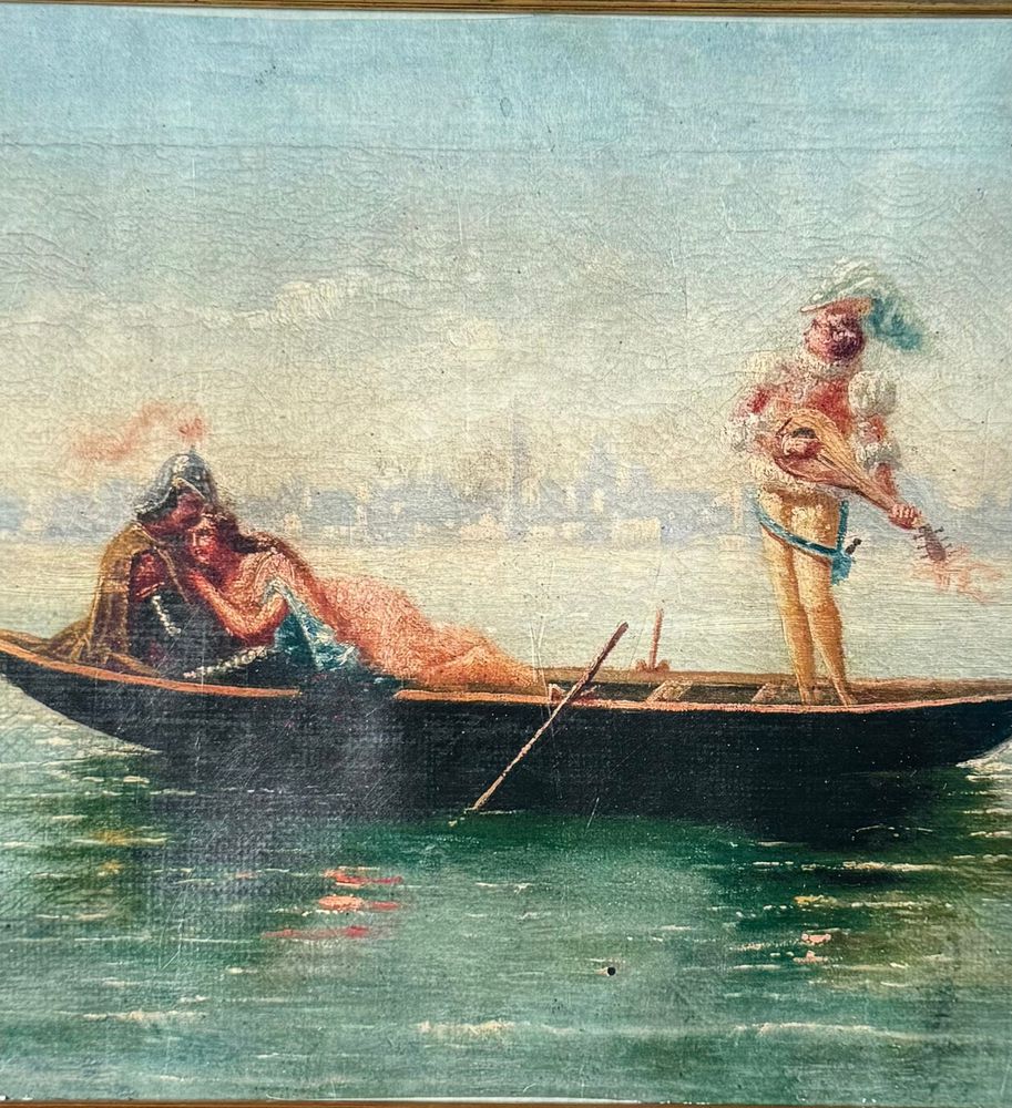 Oleografia su tela, periodo XX secolo scuola Italiana, raffigurante Gondola a Venezia. Dimensioni compreso cornice: 38,5x58 cm. Dimensioni interno cornice: 29,5x50,5 cm. Da artista anonimo. Opera in buone condizioni.