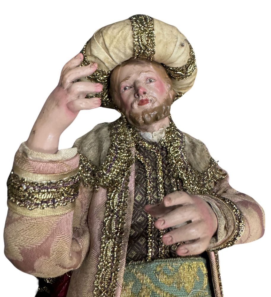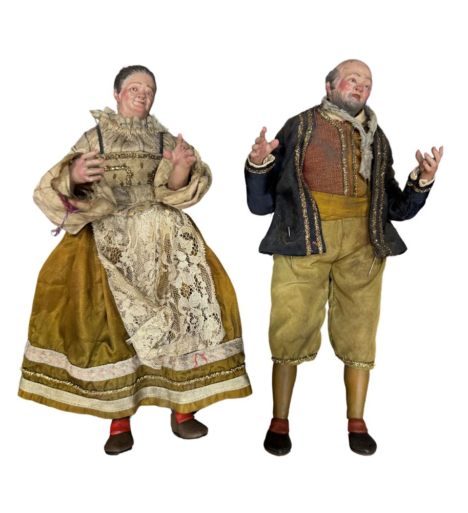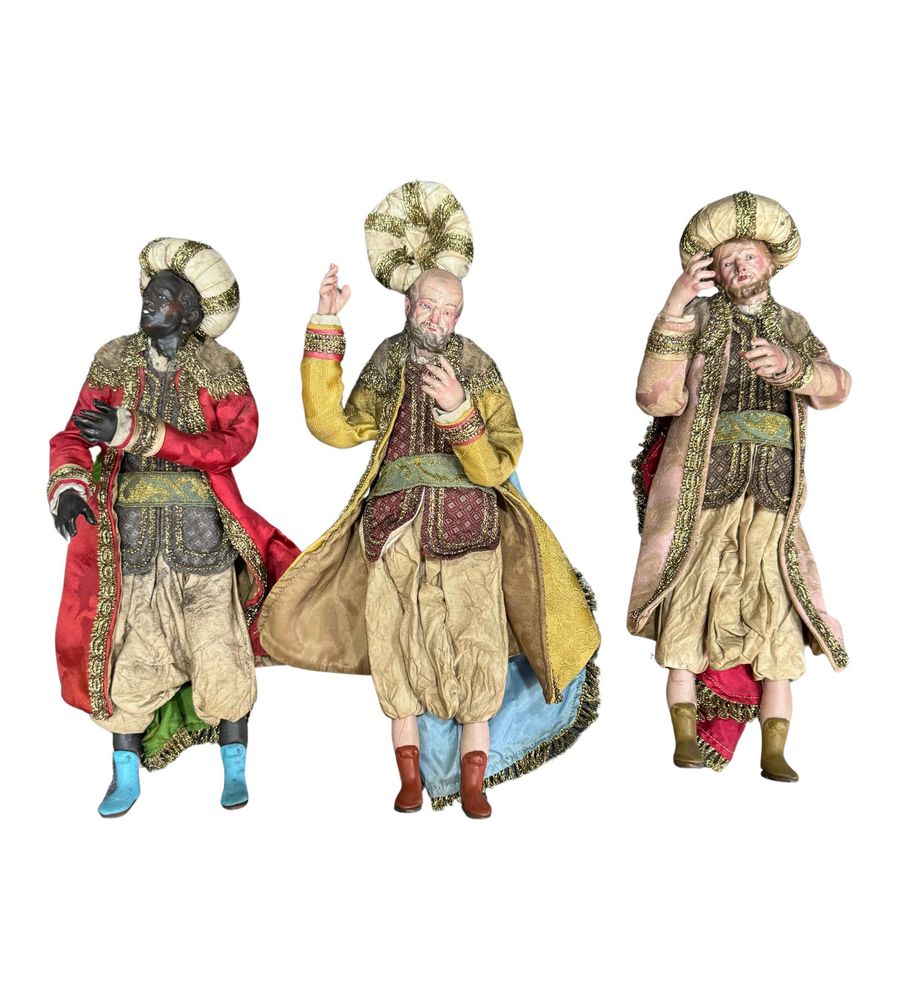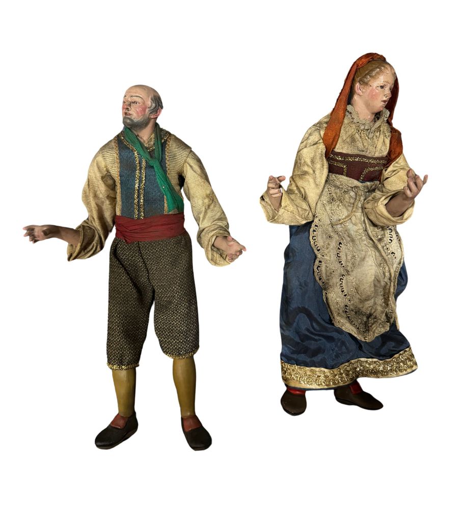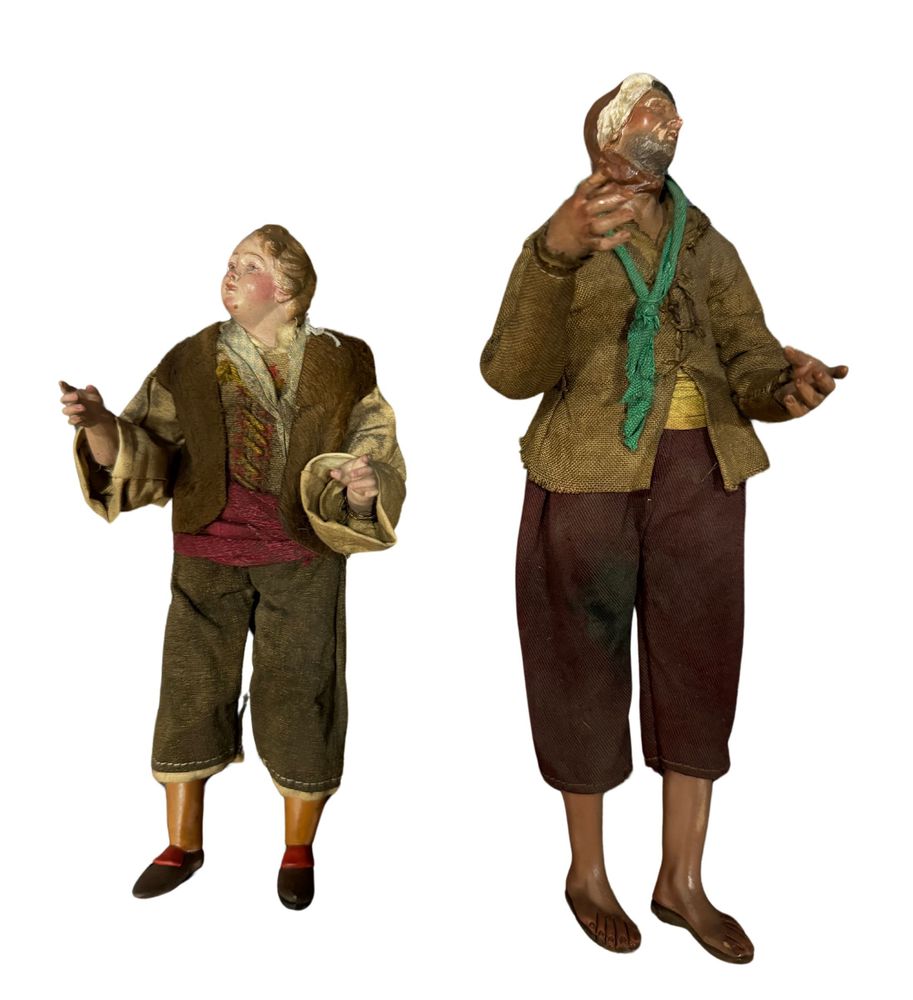 Numero di 20 sculture da presepe napoletano di periodo 1930 - 1940, così composte: Mani, piedi e testa in terracotta policromo. Occhi in vetro. Corpo in canapa. Abiti in stoffa. Dimensioni: 25 cm. Tutte e 20 sculture si presento in ottime condizioni con lievi segni di vissuto come da foto allegate. Provenienza collezione privata famiglia napoletana.