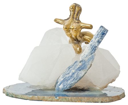 Magda Legnaioli (Junediai, Brasile 1953) ABBRACCIO IL MONDO, 2010 Scultura in bronzo, con pietre dure: agata blu, cianite blu e cristallo, cm. 18x20x16 Sotto la base: firma e data.
