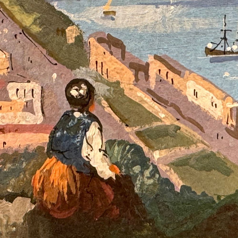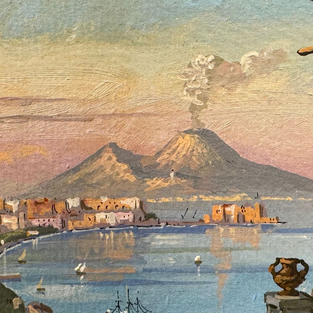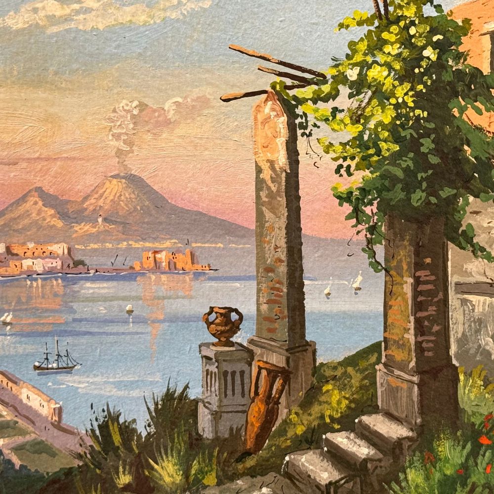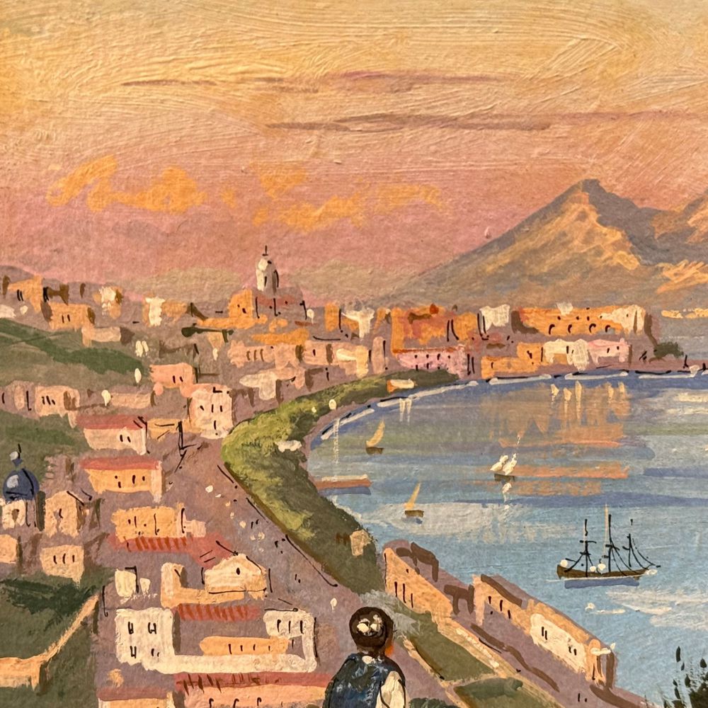 Dipinto guazzo (tempera su carta), periodo XX secolo scuola Italiana, raffigurante Veduta di Napoli da Posillipo. Dimensioni: 21x27,5 cm. Da artista anonimo. Opera in buone condizioni con lievi segni di vissuto come da foto allegate.