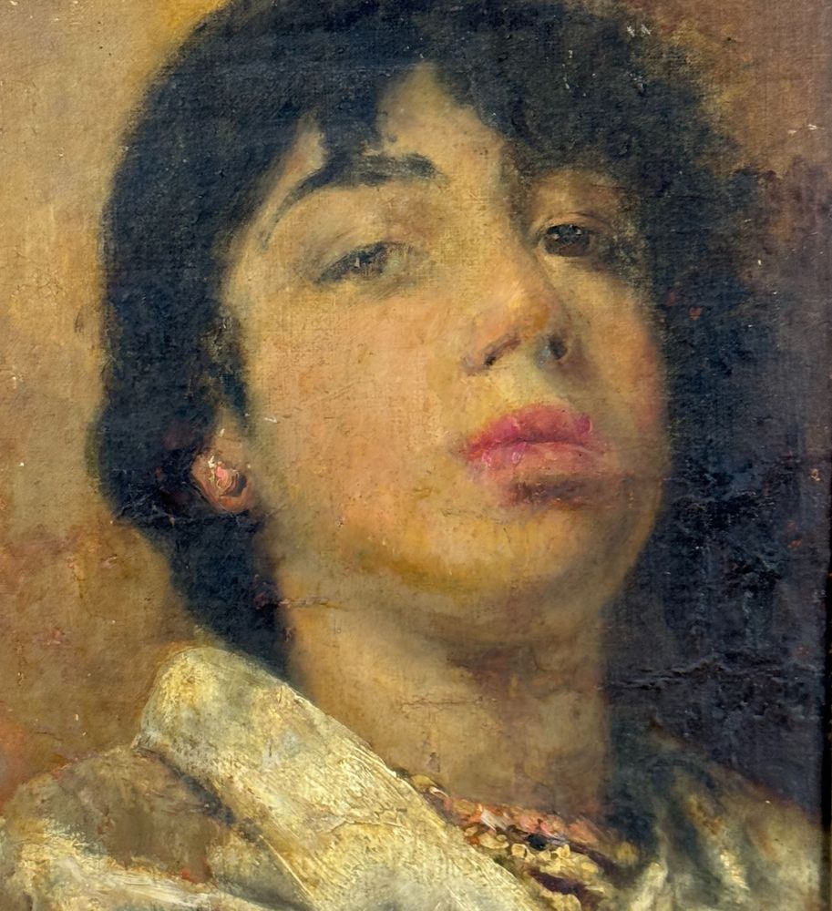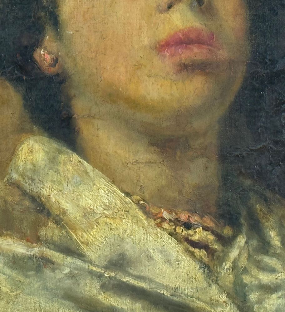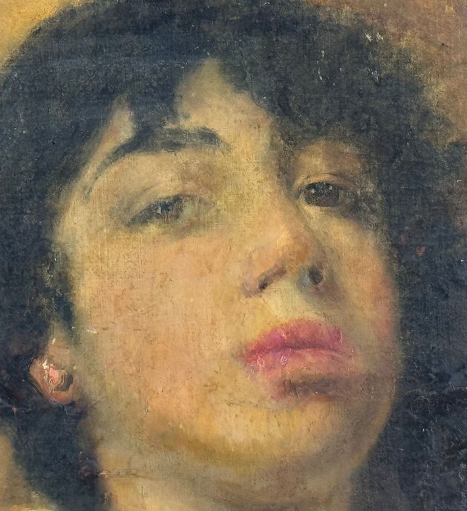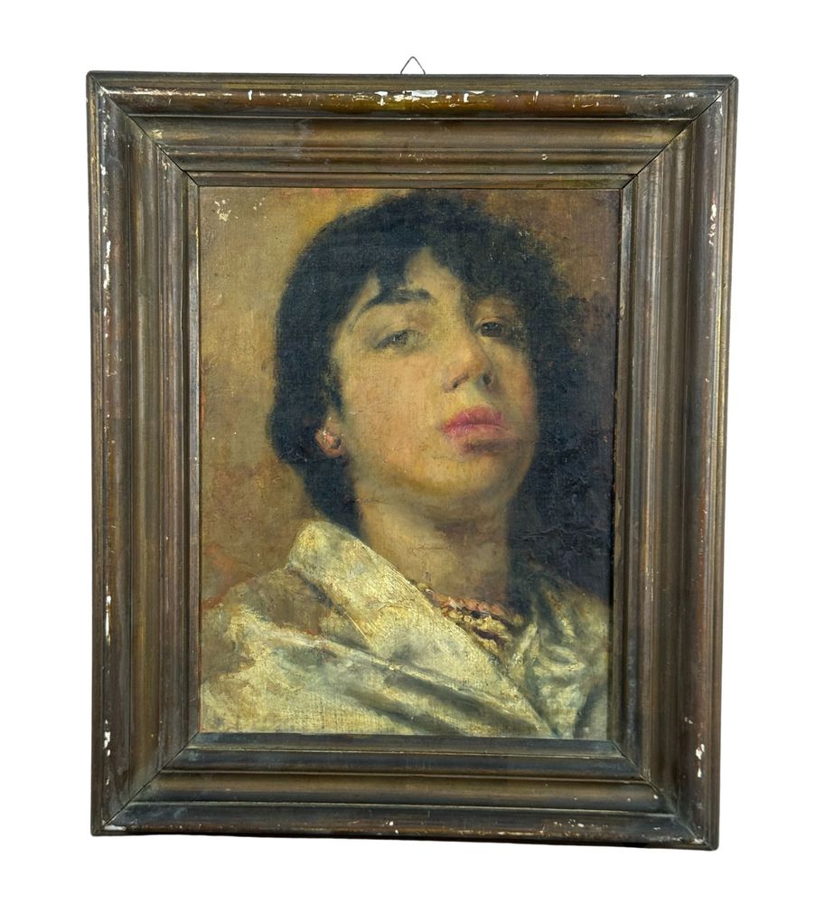 Dipinto olio su tela applicata su pannello, periodo XIX secolo scuola Italiana, raffigurante Ritratto di donna. Dimensioni compreso cornice: 43x52 cm. Dimensioni interno cornice: 30,5x41 cm. Da artista anonimo. Opera in discrete condizioni con lievi segni di vissuto come da foto allegate.