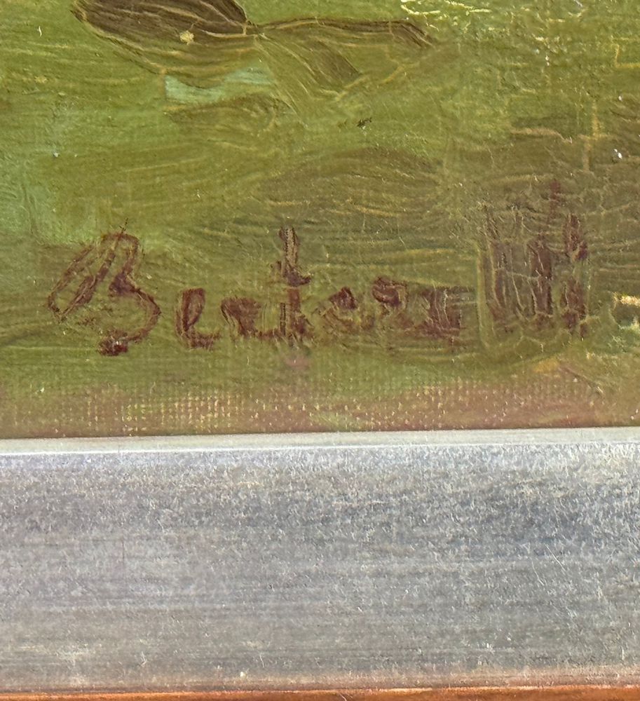 Dipinto olio su tela, periodo XIX/XX secolo scuola Italiana, raffigurante Paesaggio. Dimensioni compreso cornice: 84x54 cm. Dimensioni interno cornice: 70x40 cm. Reca firma in basso a destra da artista non identificato. Opera in buone condizioni.