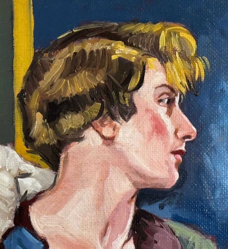 Dipinto olio su tela applicata su pannello, periodo XX secolo scuola italiana, raffigurante Ritratto di giovane. Dimensioni compreso cornice: 63x72 cm. Dimensioni interno cornice: 40x50 cm. Reca firma in alto a sinistra da artista non identificato. Opera in buone condizioni.