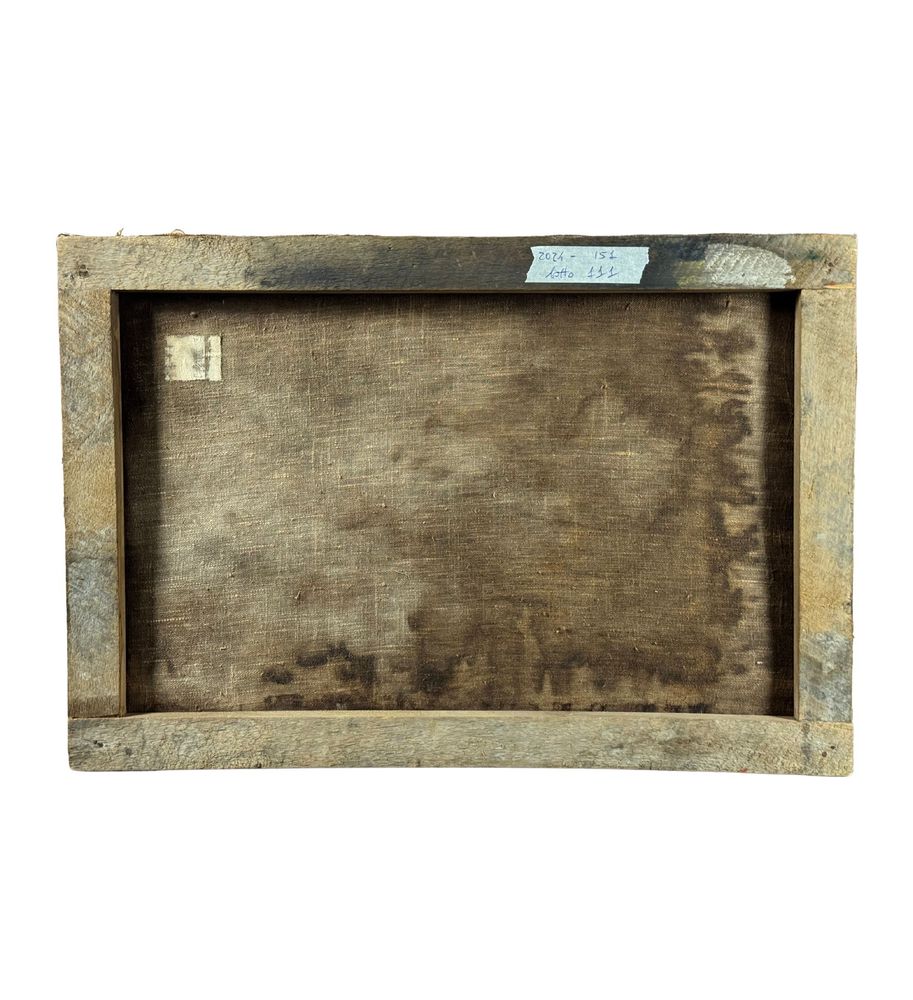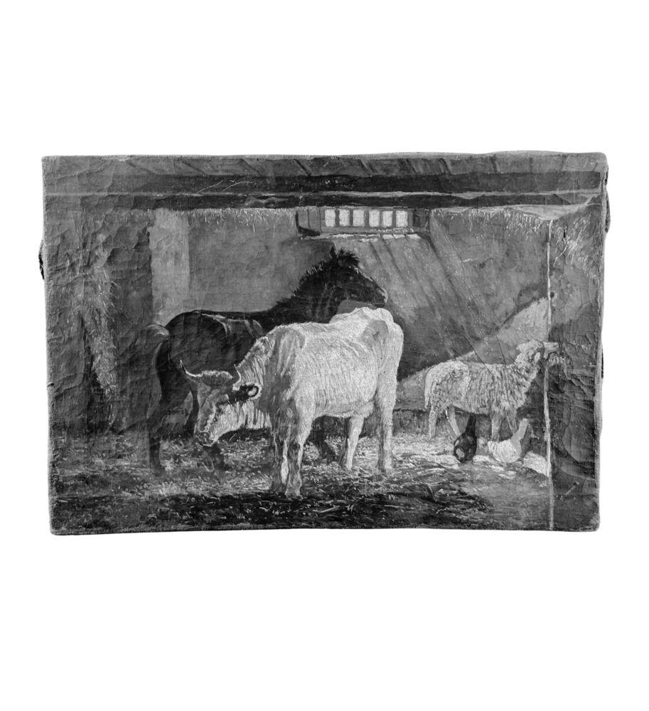 Dipinto olio su tela, periodo XIX secolo scuola italiana, raffigurante Stalla con gregge. Dimensioni: 56,5x38,5 cm. Da artista anonimo. Opera in discrete condizioni.