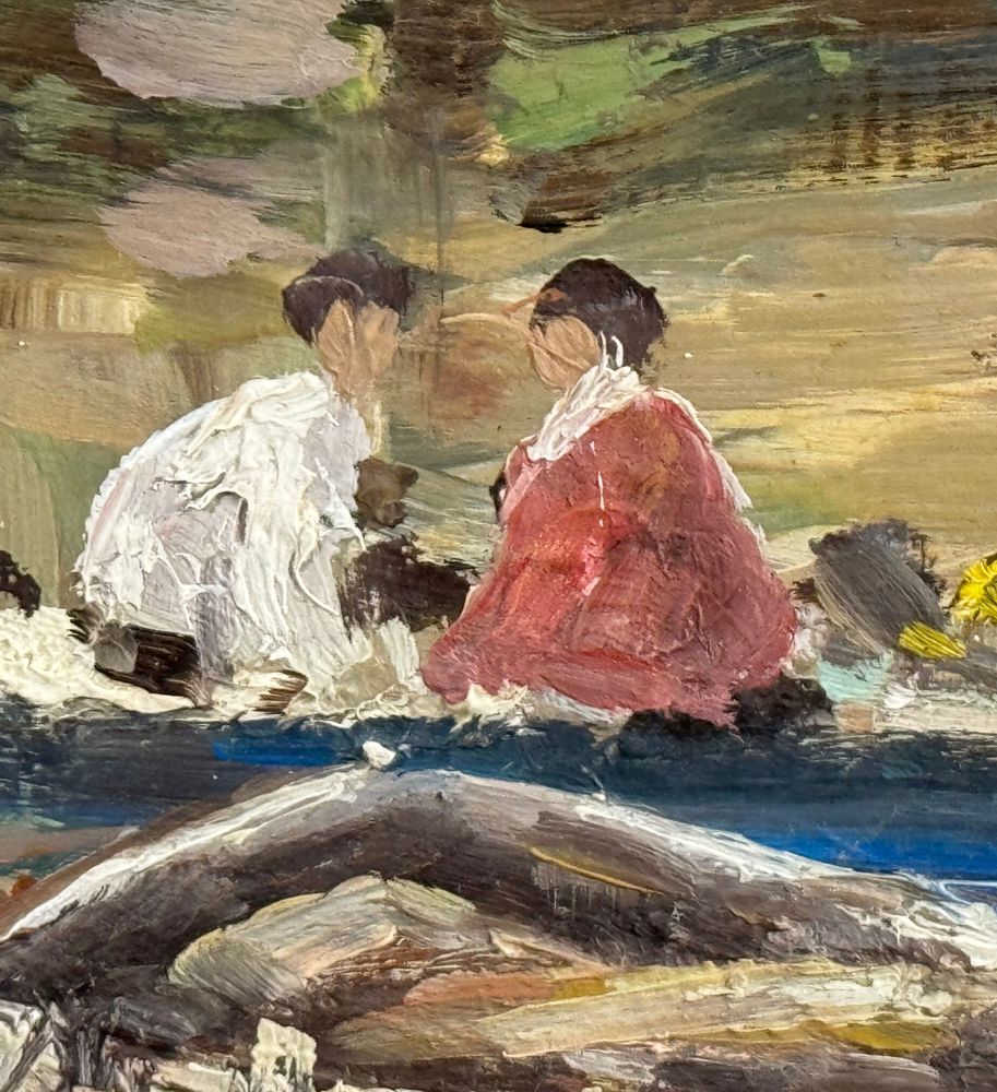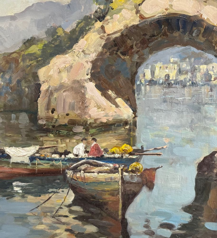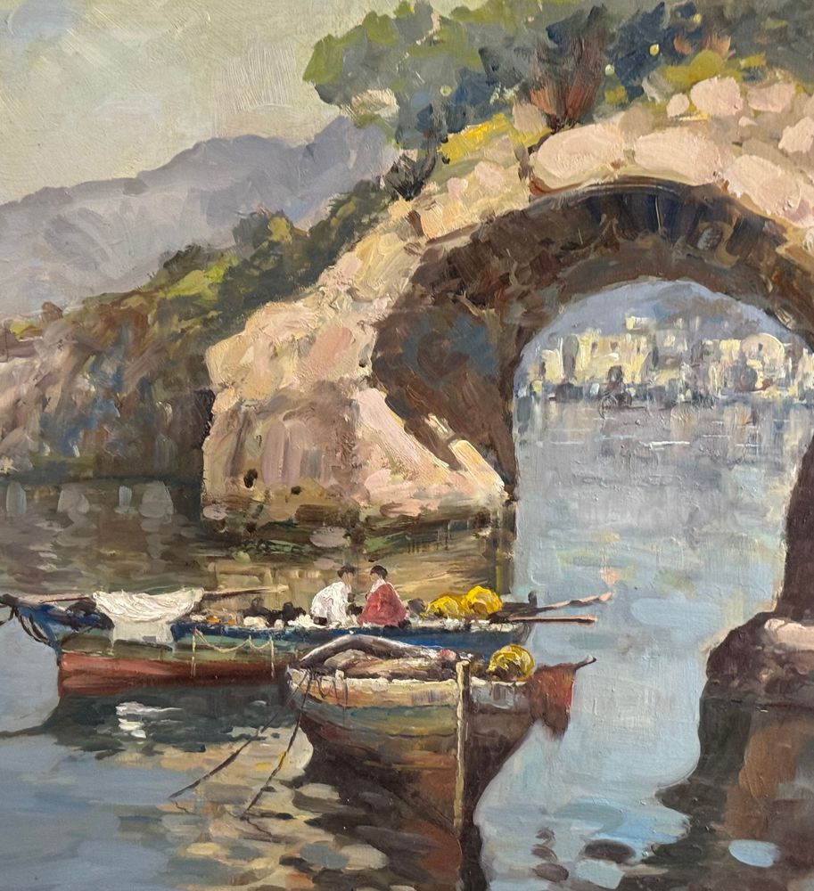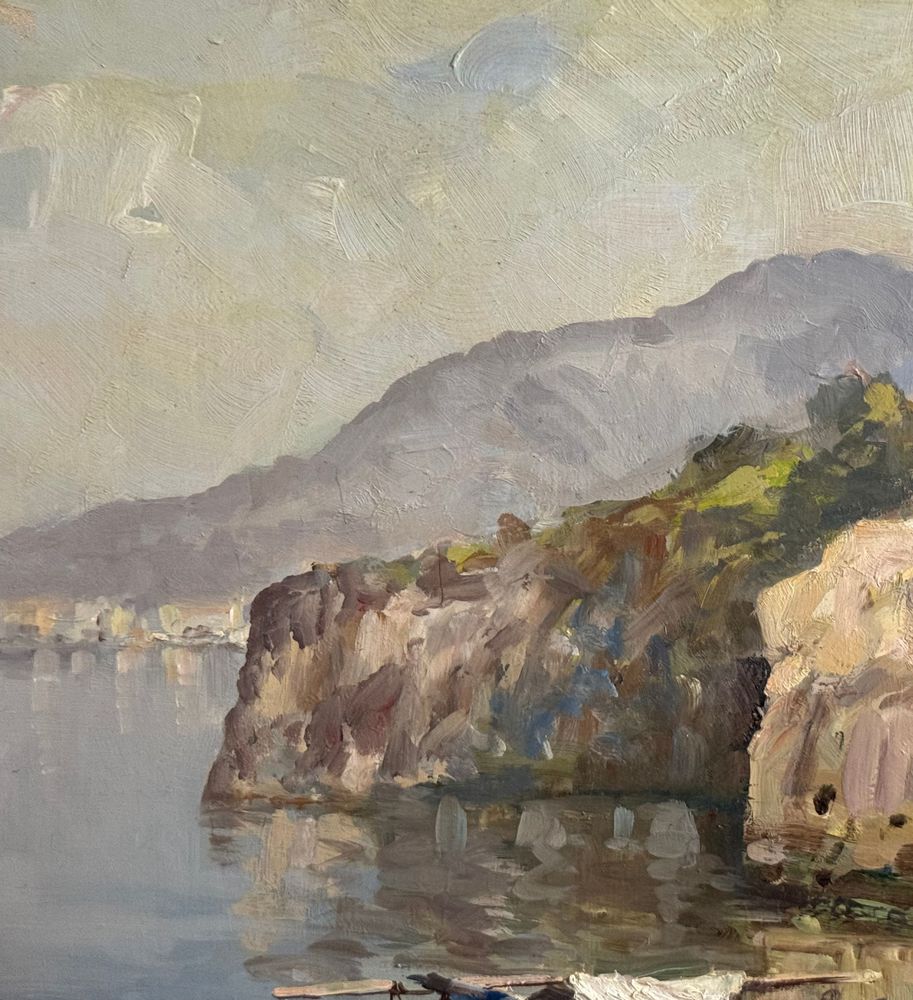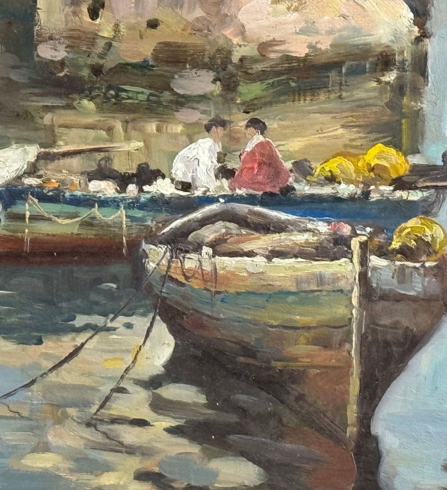 Dipinto olio su pannello, periodo XX secolo scuola Italiana, raffigurante Marina. Dimensioni compreso cornice: 63x53 cm. Dimensioni interno cornice: 50x40 cm. Reca firma in basso a sinistra e autentica sul retro da Leon Giuseppe Buono. Opera in buone condizioni.