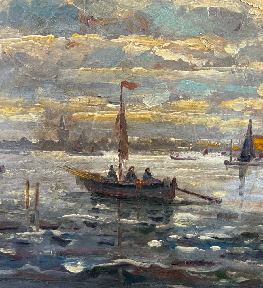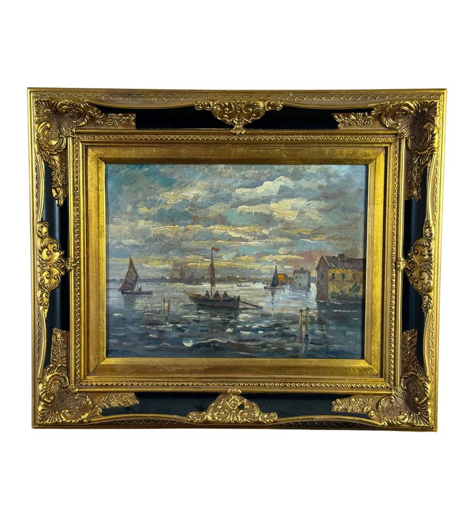 Dipinto olio su tela, periodo XX secolo scuola Italiana, raffigurante Scorcio di marina con barche. Dimensioni compreso cornice: 61x51 cm. Dimensioni interno cornice: 30x40 cm. Da artista anonimo. Opera in buone condizioni.