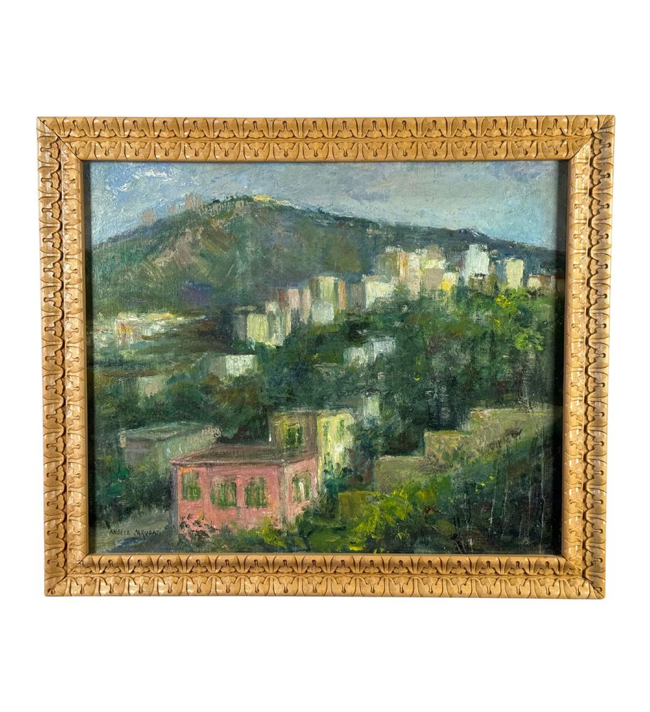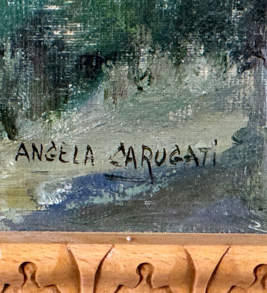 Dipinto olio su cartoncino telato, periodo XX secolo scuola Italiana, raffigurante Paesaggio. Dimensioni compreso cornice: 63x53 cm. Dimensioni interno cornice: 54x45 cm. Reca firma in basso a sinistra da Angela Carugati (1881 - 1977). Opera in buone condizioni.