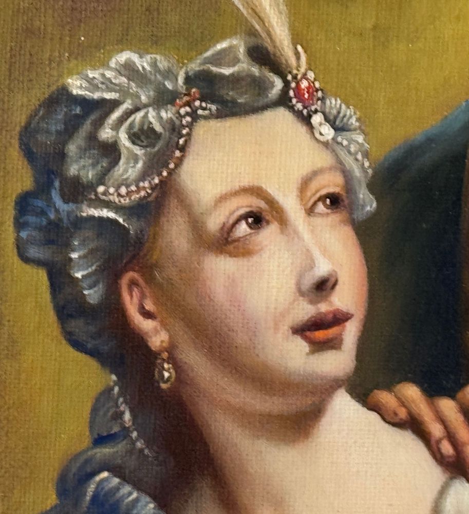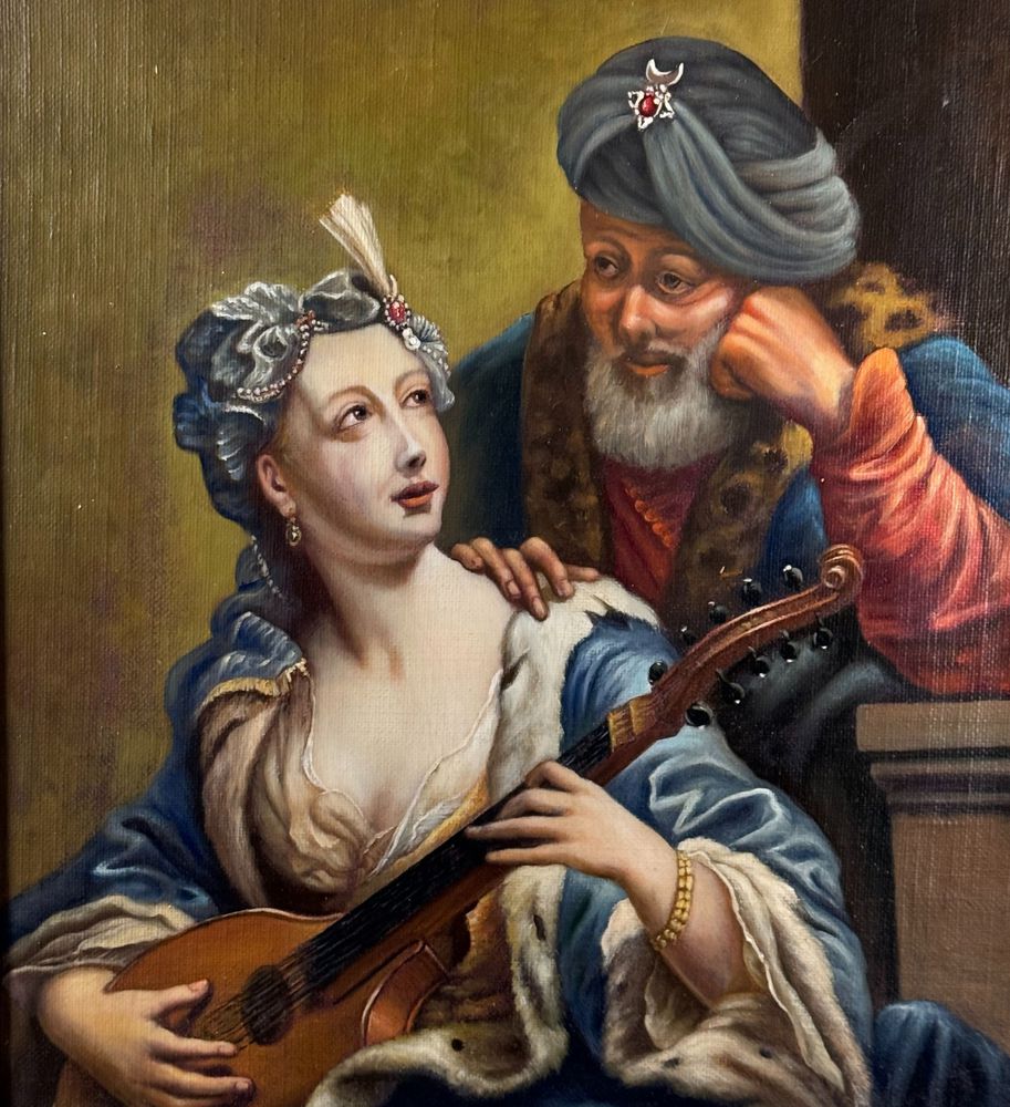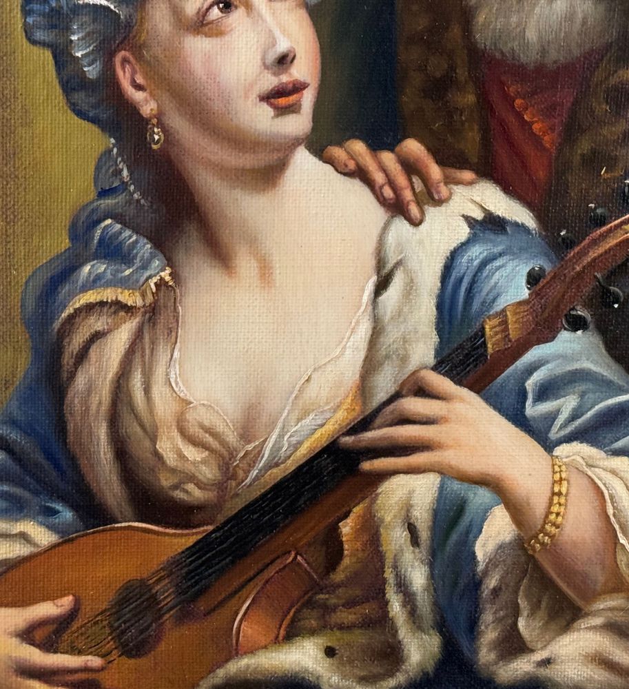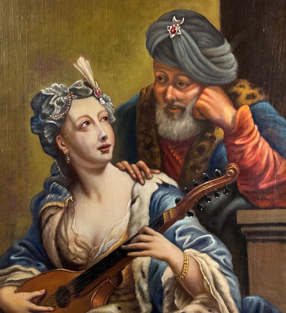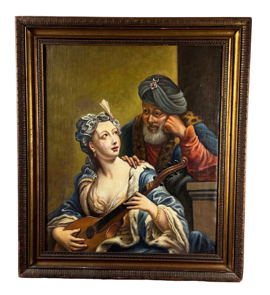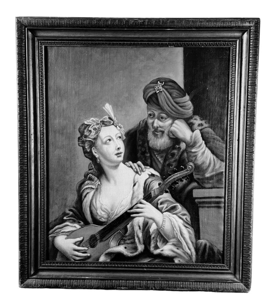Dipinto olio su tela applicata su tavola, periodo XIX/XX secolo scuola italiana, raffigurante L' amore inadeguato. (Copia d'autore), opera di ispirazione classica. Dimensioni compreso cornice: 80x70 cm. Dimensioni interno cornice: 56x66 cm. Da artista anonimo. Opera in buone condizioni.