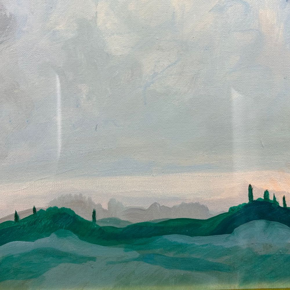 Dipinto olio su tela, periodo XX secolo scuola Italiana, raffigurante Paesaggio con colli.