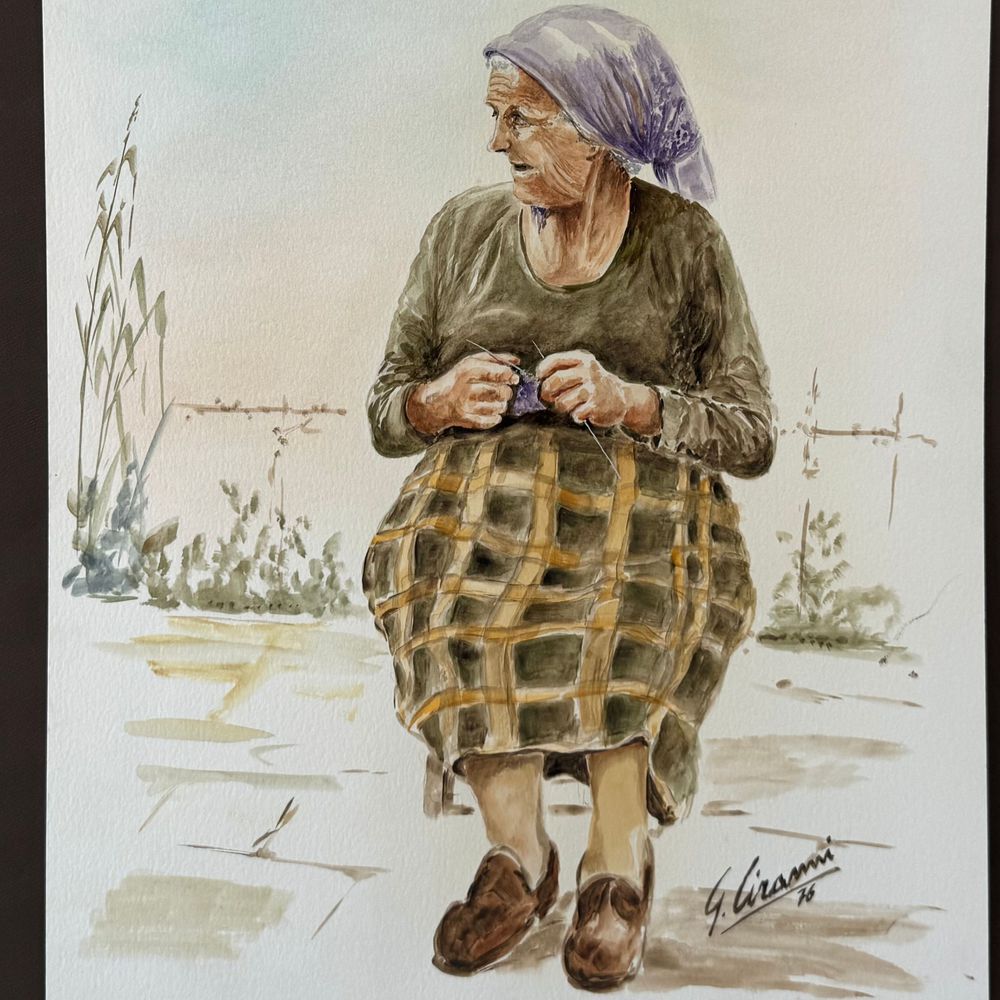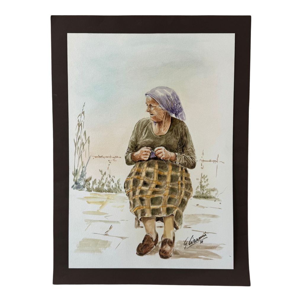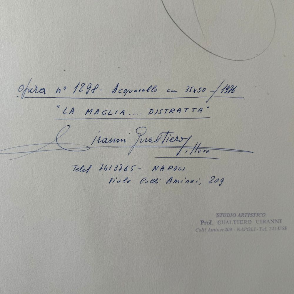 Acquerello su carta, periodo XX secolo 1976 scuola Italiana, raffigurante "La maglia distratta".