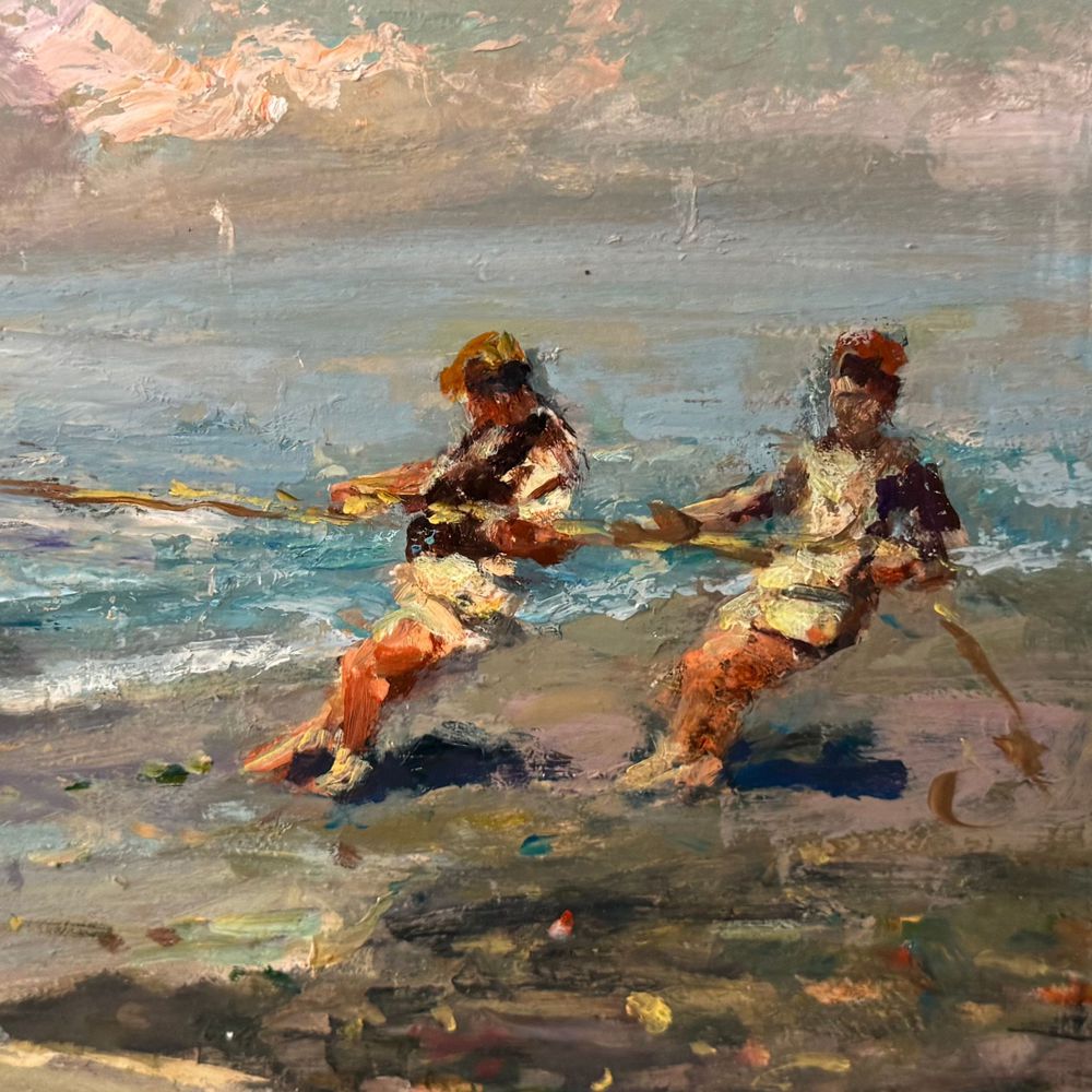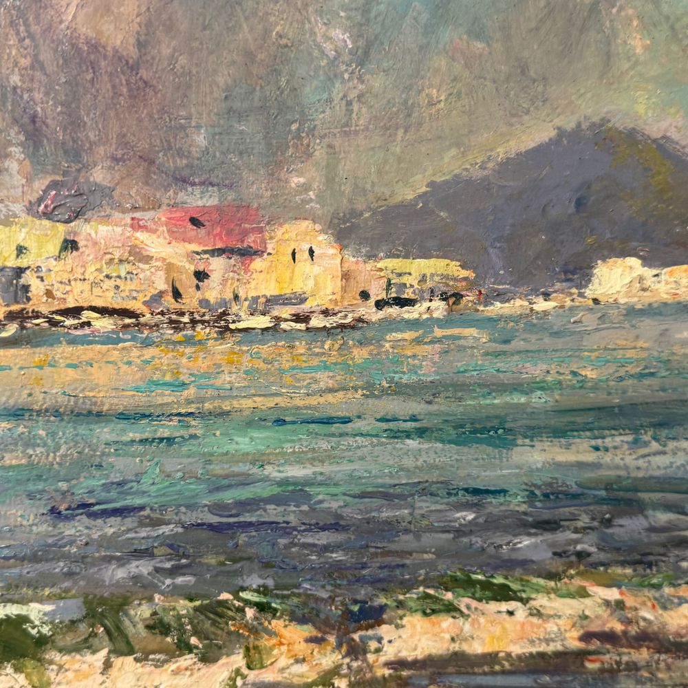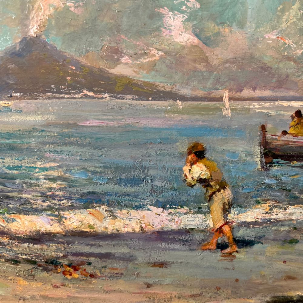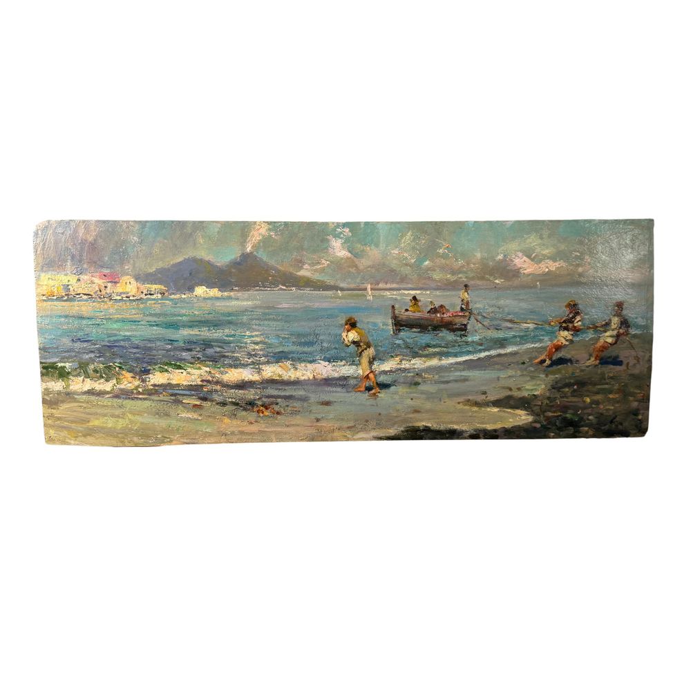 Dipinto olio su tavola, periodo XX secolo scuola Italiana, raffigurante Marina napoletana.