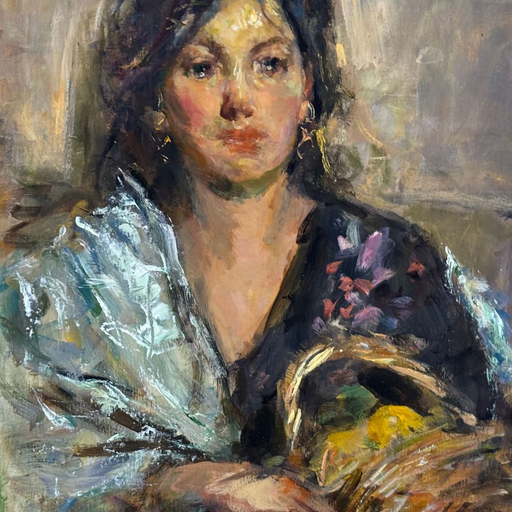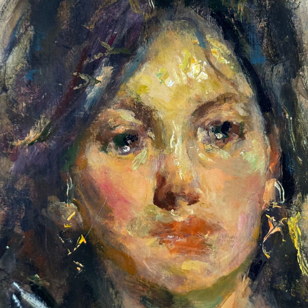 Dipinto olio su tavola, periodo XX secolo scuola italiana, raffigurante Ritratto di donna. Dimensioni: 30x40 cm. Da artista anonimo. Opera in buone condizioni.