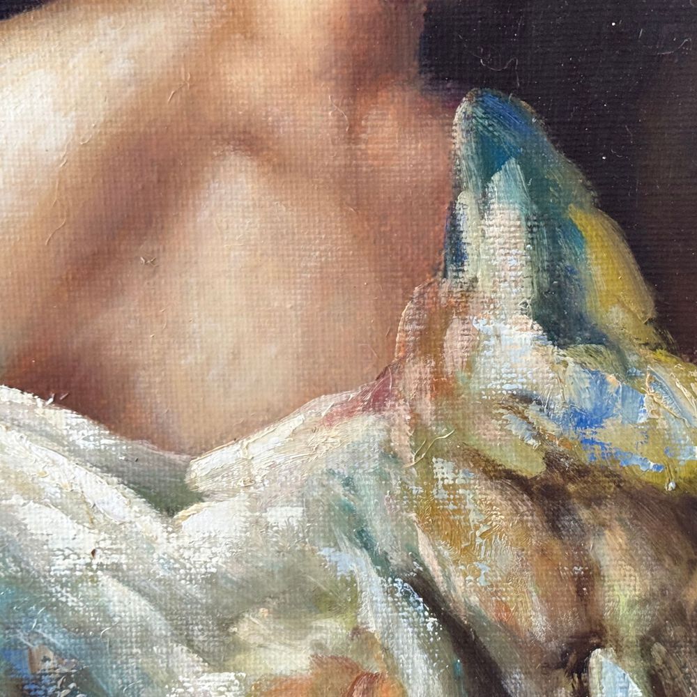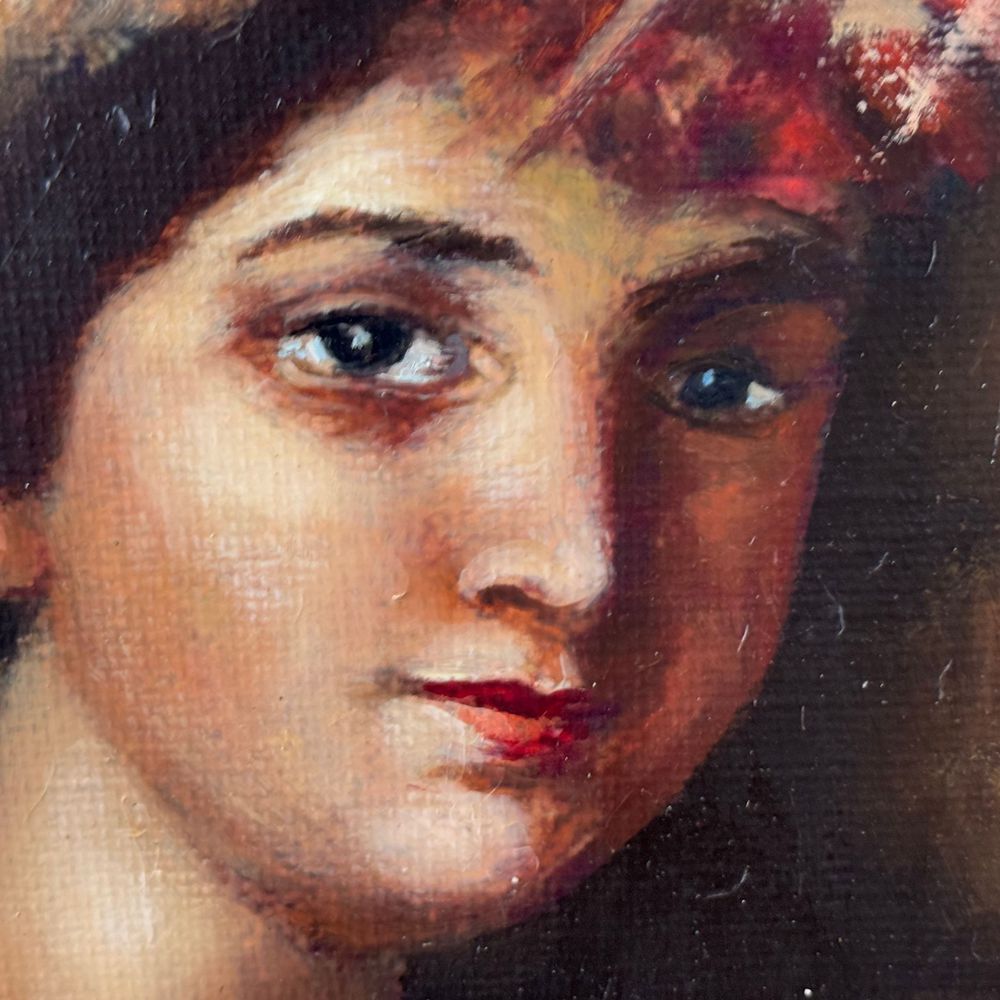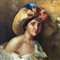 Dipinto olio su tela, periodo XX secolo scuola Italiana, raffigurante Donna con cappello. Dimensioni: 45x59 cm. Reca firma in basso a destra di difficile lettura. Opera in buone condizioni.