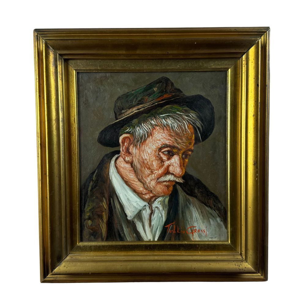 Dipinto olio su tavola, periodo XX secolo scuola Italiana, raffigurante Ritratto di anziano. Dimensioni interno cornice: 27x32 cm. Dimensioni compreso cornice: 38x42 cm. Reca firma in basso a destra da Tulio Grassi (1946). Opera in buone condizioni.