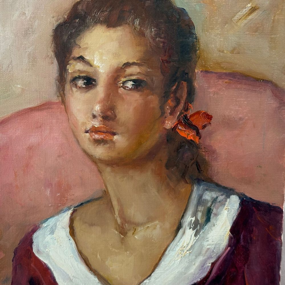 Dipinto olio su tela, periodo XX secolo scuola Italiana, raffigurante Ritratto “ Di mia figlia”. Dimensioni: 30x40 cm. Reca firma in basso a destra da Giovanni Pane (1928 - 2010). Opera in buone condizioni.