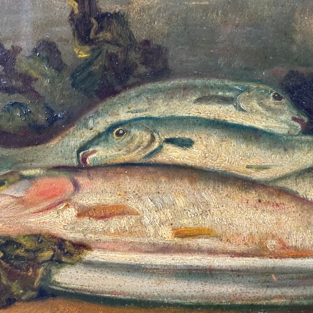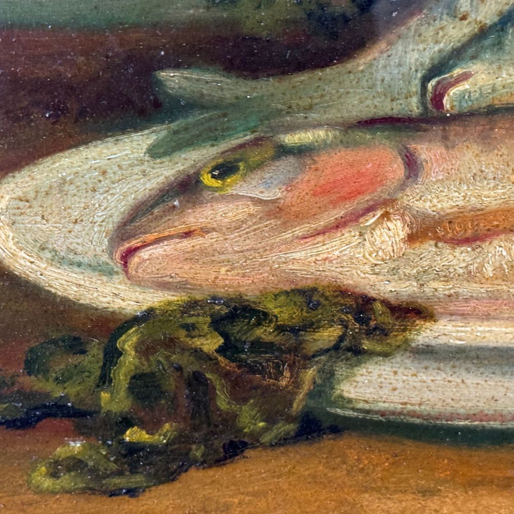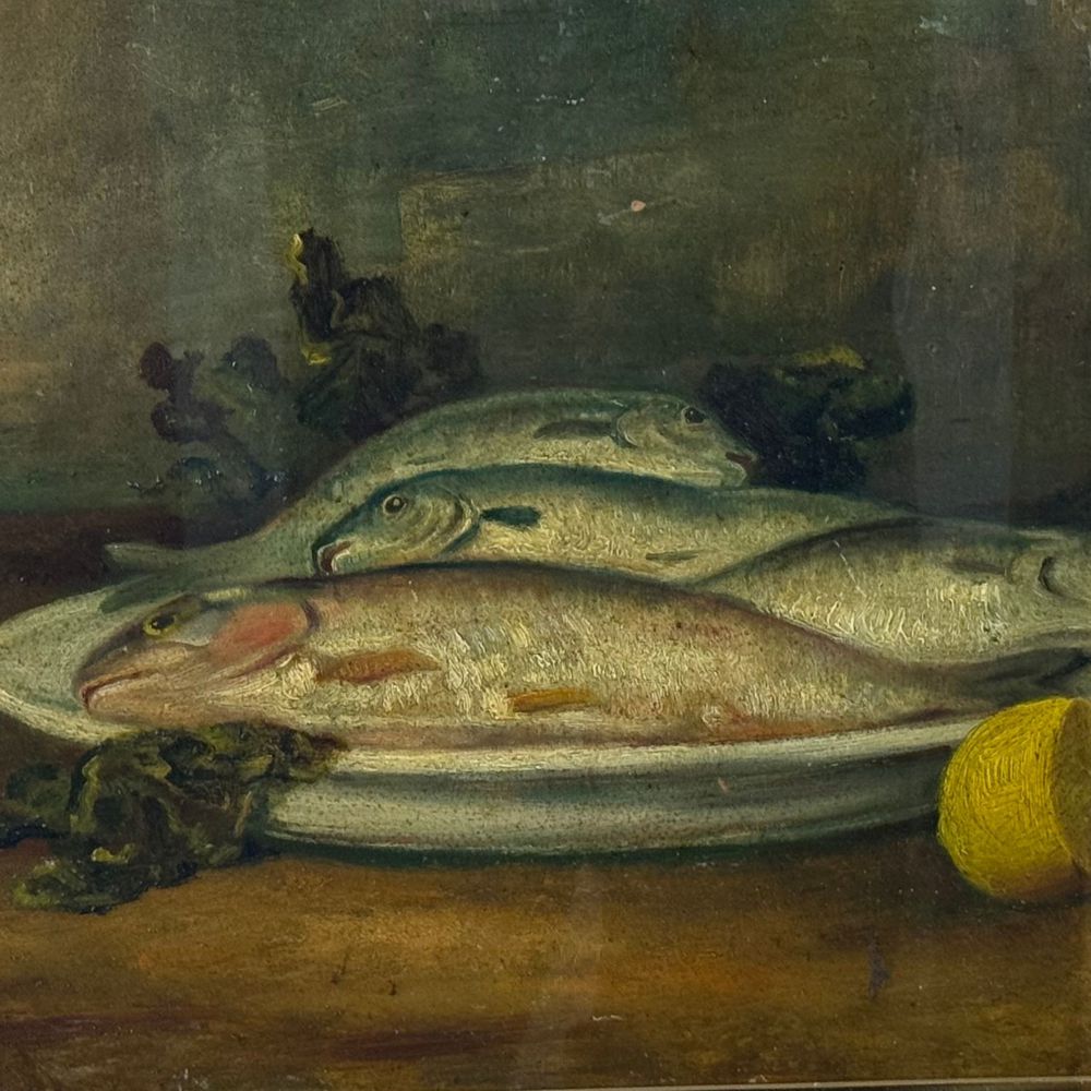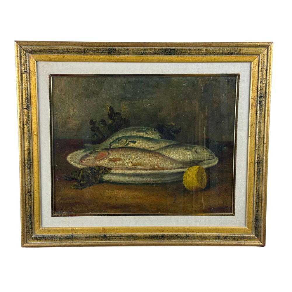 Dipinto olio su cartoncino, periodo XX secolo scuola Italiana, raffigurante natura morta pesci. Dimensioni interno cornice: 45x35 cm, dimensioni compreso cornice: 60x50 cm. Da artista anonimo. Opera in buone condizioni.