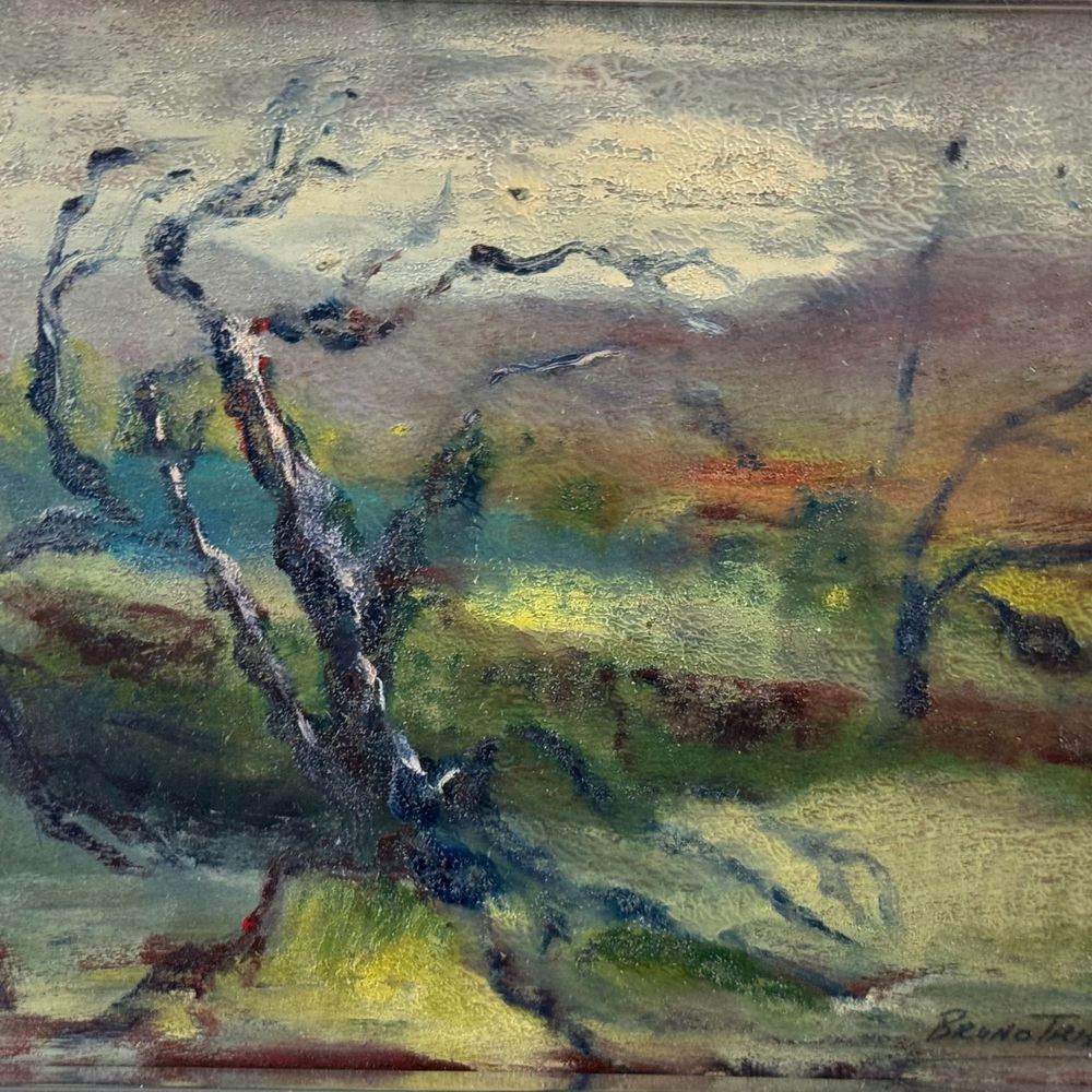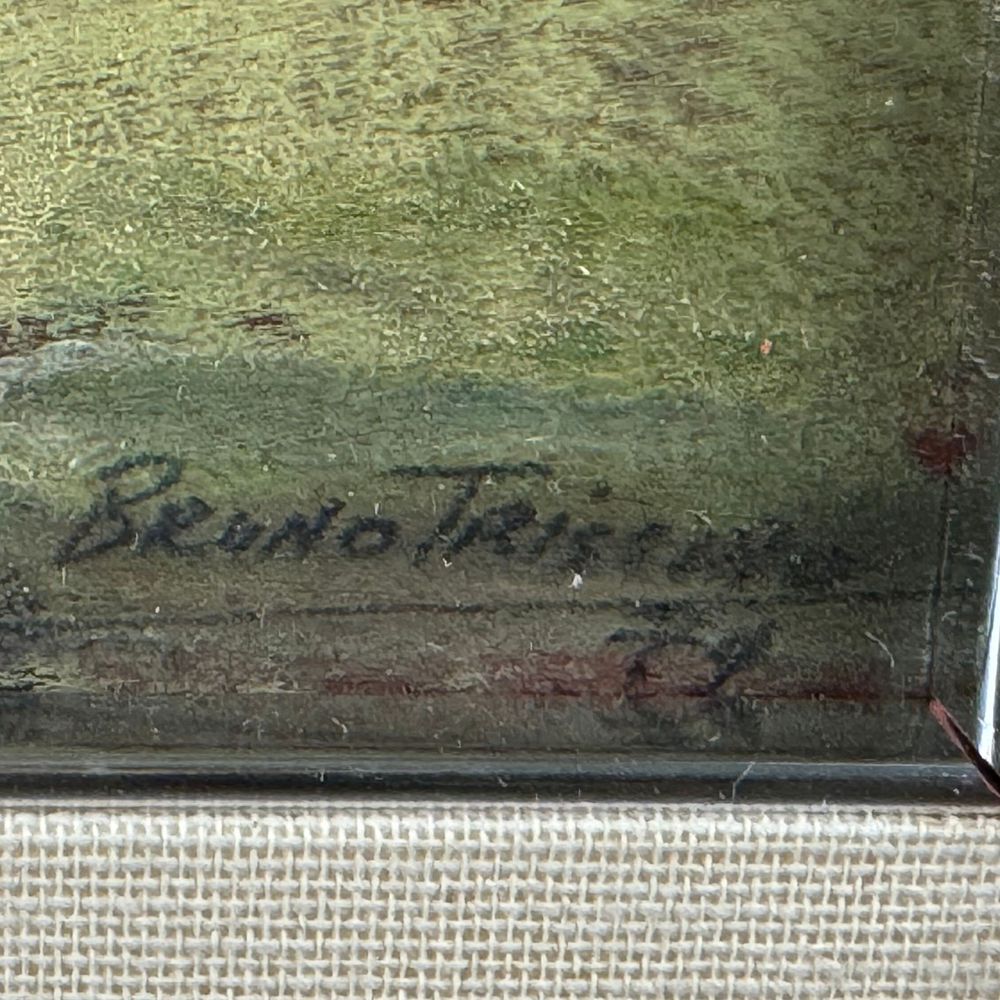 Dipinto olio su pannello, periodo XX secolo scuola italiana, raffigurante Paesaggio nella maniera impressionista. Dimensioni interno cornice: 24x18 cm. Dimensioni compreso cornice: 48x43 cm. Firma in basso a destra da Bruno Triscino. Opera in buone condizioni.