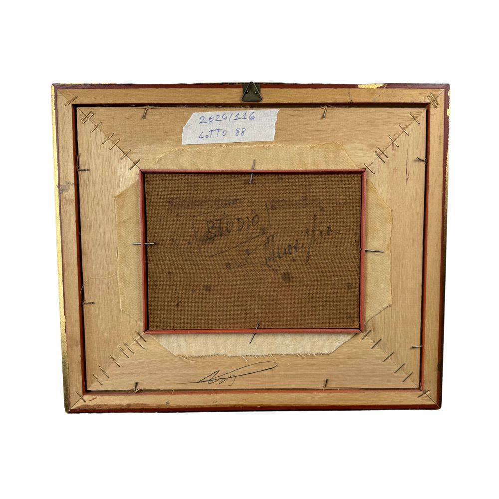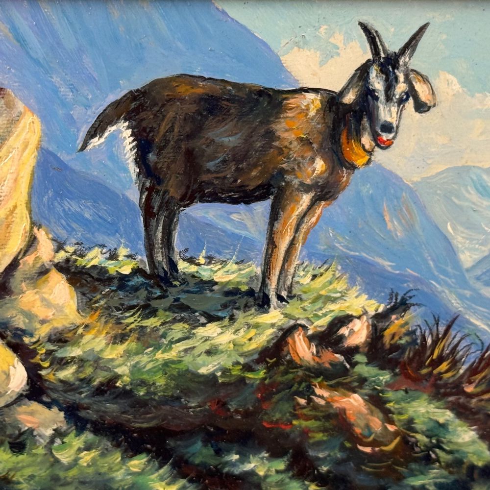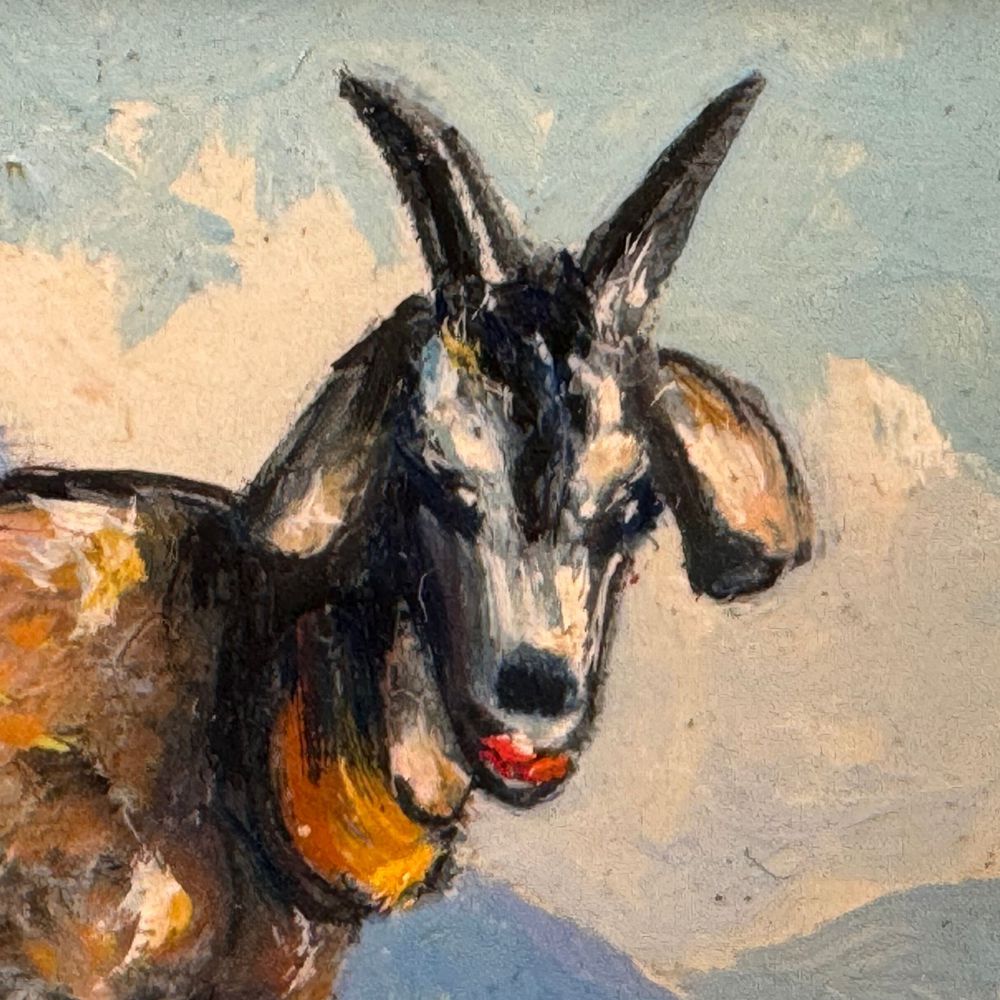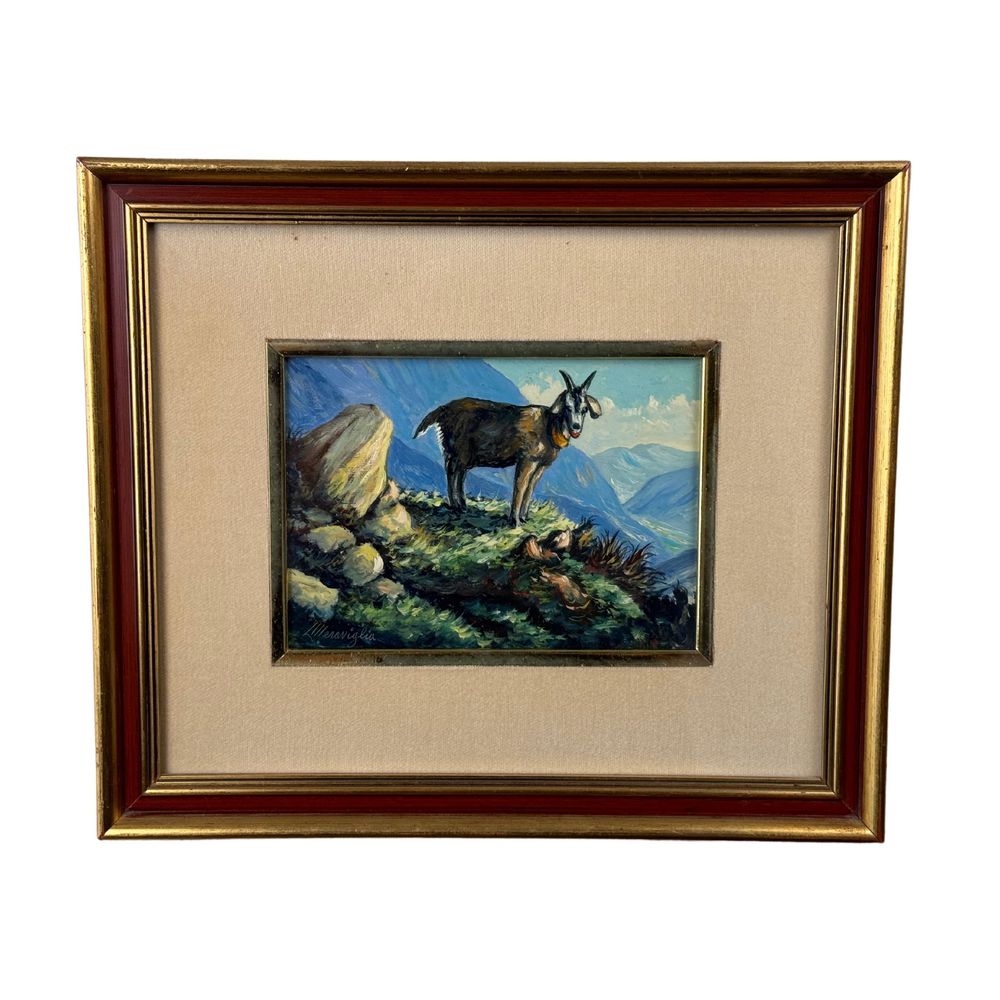 Dipinto olio su tavoletta, periodo XX secolo scuola Italiana, raffigurante Capretta. Dimensioni interno cornice: 18x13 cm. Dimensioni compreso cornice: 33x38 cm. Firma in basso a sinistra da Carmine Meraviglia (Napoli 1945). Opera in buone condizioni.