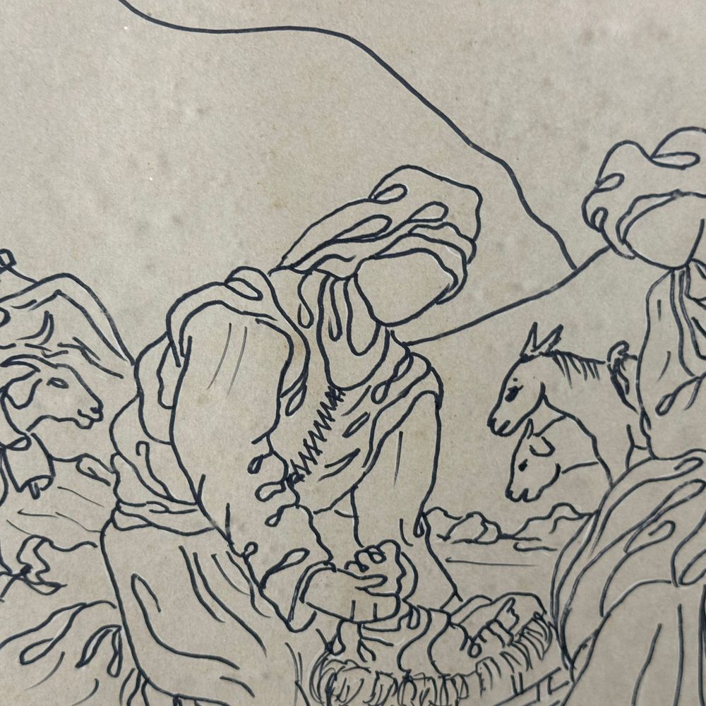 Acrilico su cartoncino monocolore, periodo XX secolo scuola Italiana, raffigurante Scena Biblica, dimensioni interno cornice: 67x47 cm. Dimensioni compreso cornice: 74x54 cm. Firma in basso a destra da Carmine Meraviglia (Napoli 1945). Opera in buone condizioni.