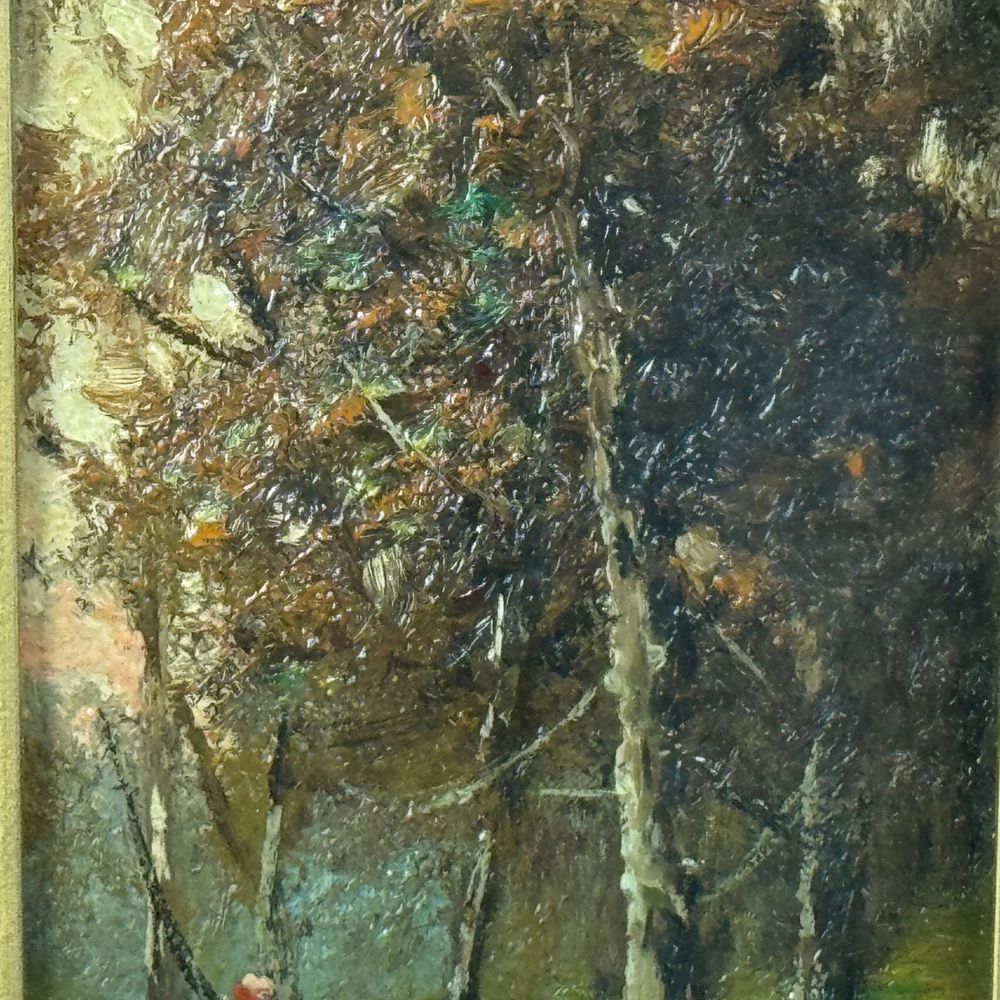 Dipinto olio su tavola, periodo XX secolo scuola Italiana, raffigurante Personaggio nel bosco. Dimensioni interno cornice: 10,5x18,5 cm. Dimensioni compreso cornice: 33x41 cm. Da artista anonimo. Opera in buone condizioni, di eccellente qualità artistica, attribuibile a noto pittore di scuola Italiana.