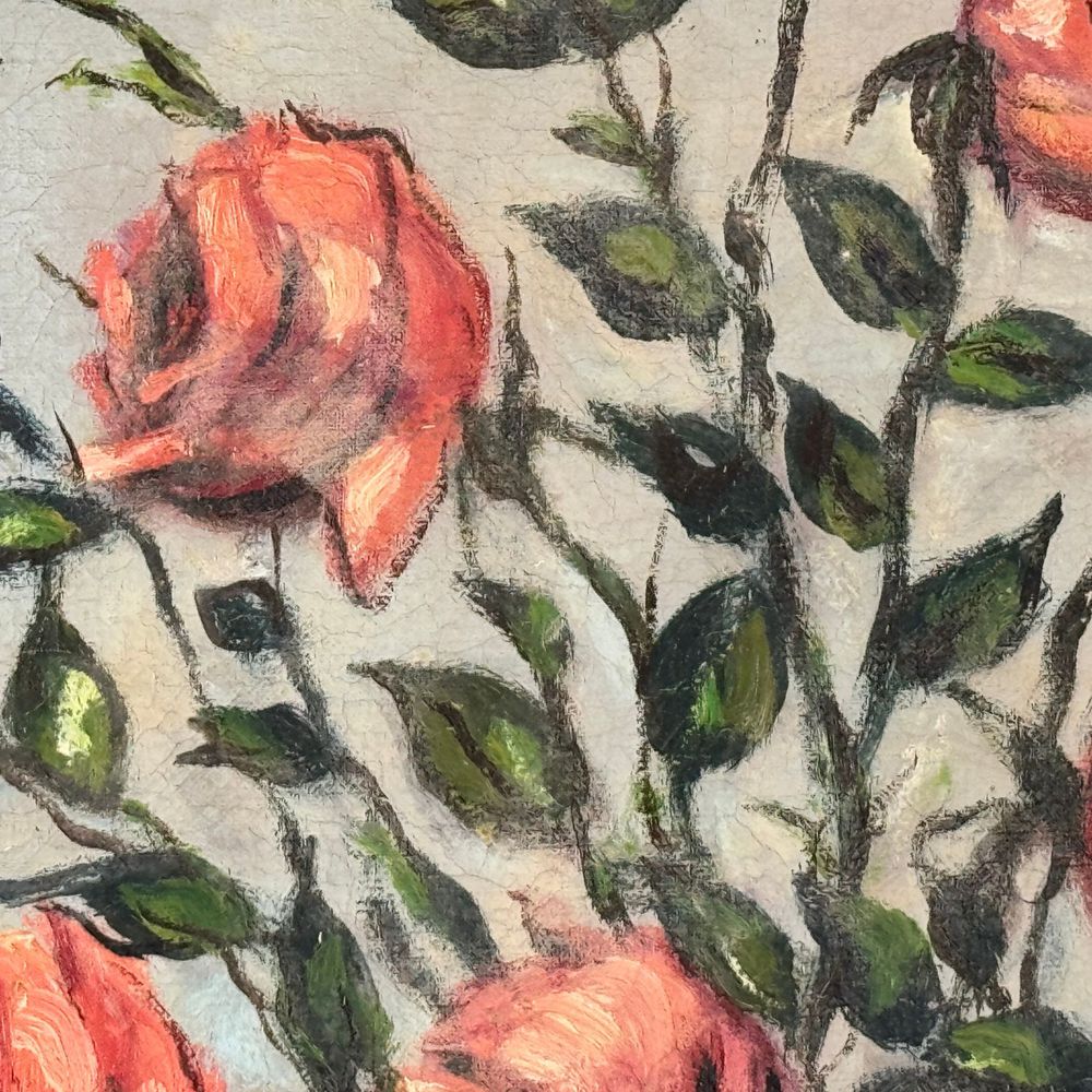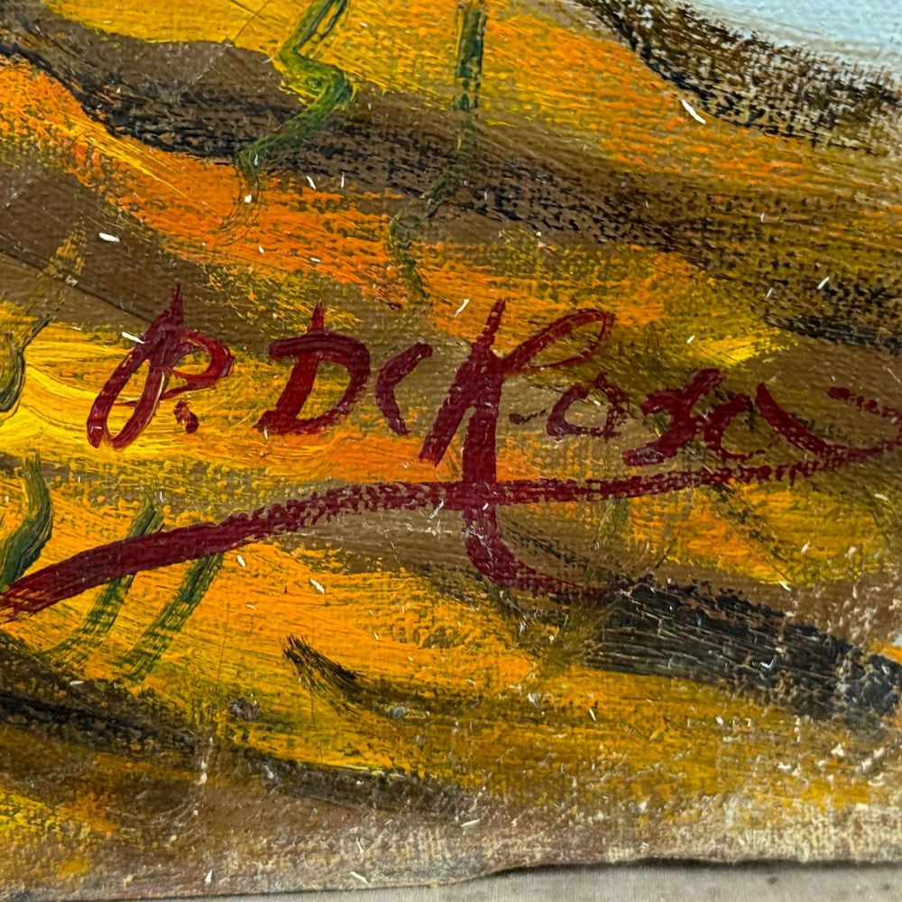 Dipinto olio su tela, periodo XX secolo scuola italiana, raffigurante Composizione di fiori. Dimensioni: 70x51 cm. Reca firma in basso a destra da P. De Rosa. Opera in buone condizioni con lievi segni di vissuto come da foto allegate.