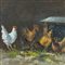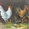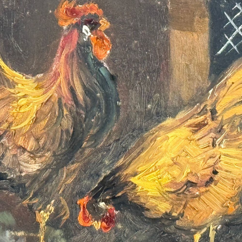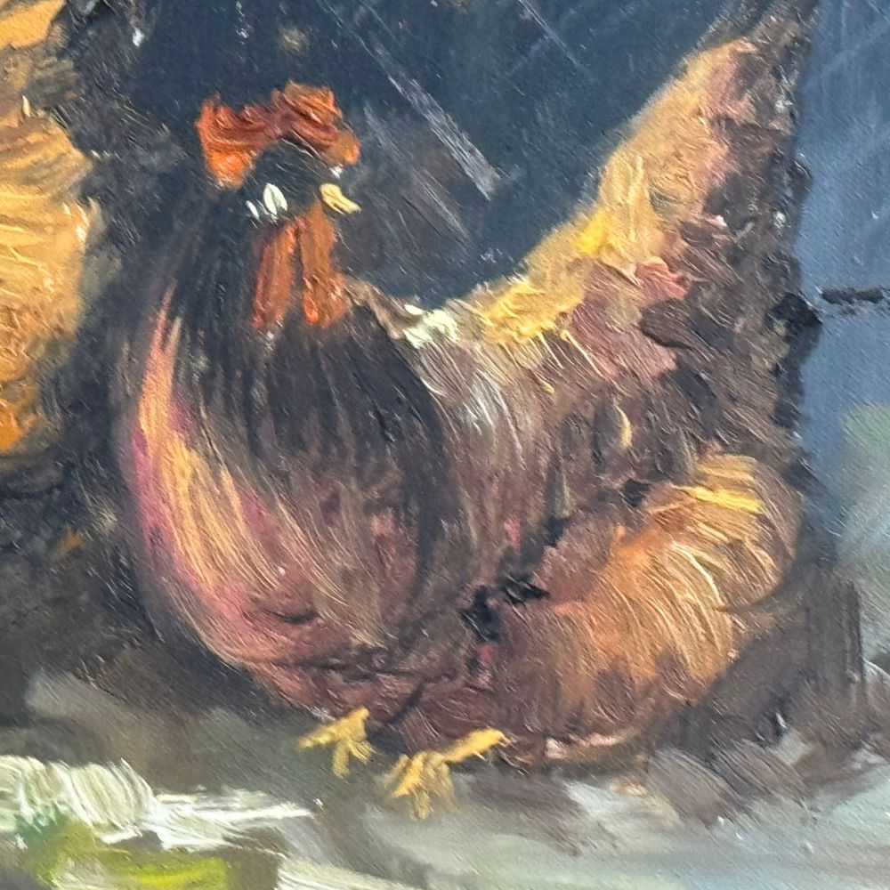Dipinto olio su tela, periodo XX secolo scuola italiana, raffigurante Galli. Dimensioni interno cornice: 50x40 cm. Dimensioni interno cornice: 79x69 cm. Reca firma in basso destra da Vincenzo Laricchia (1940 - 2017). Opera in buone condizioni.