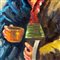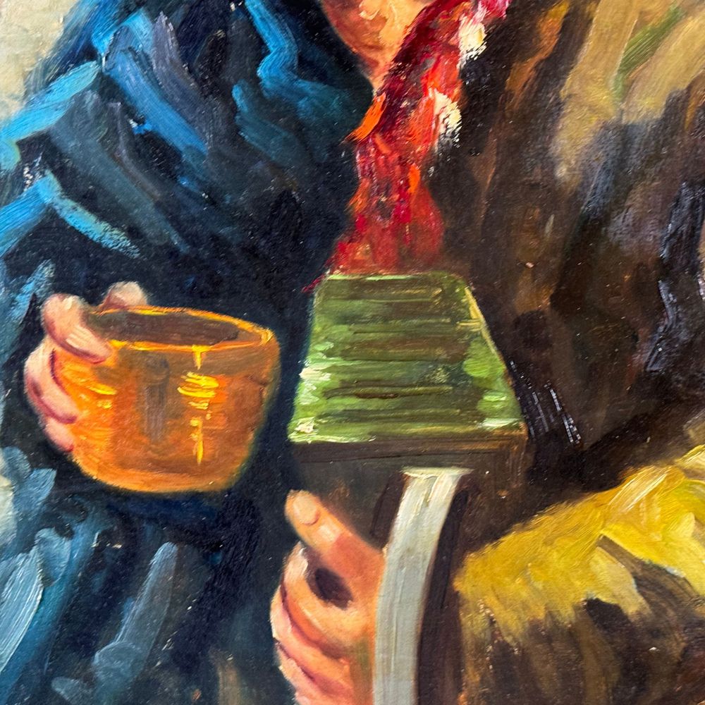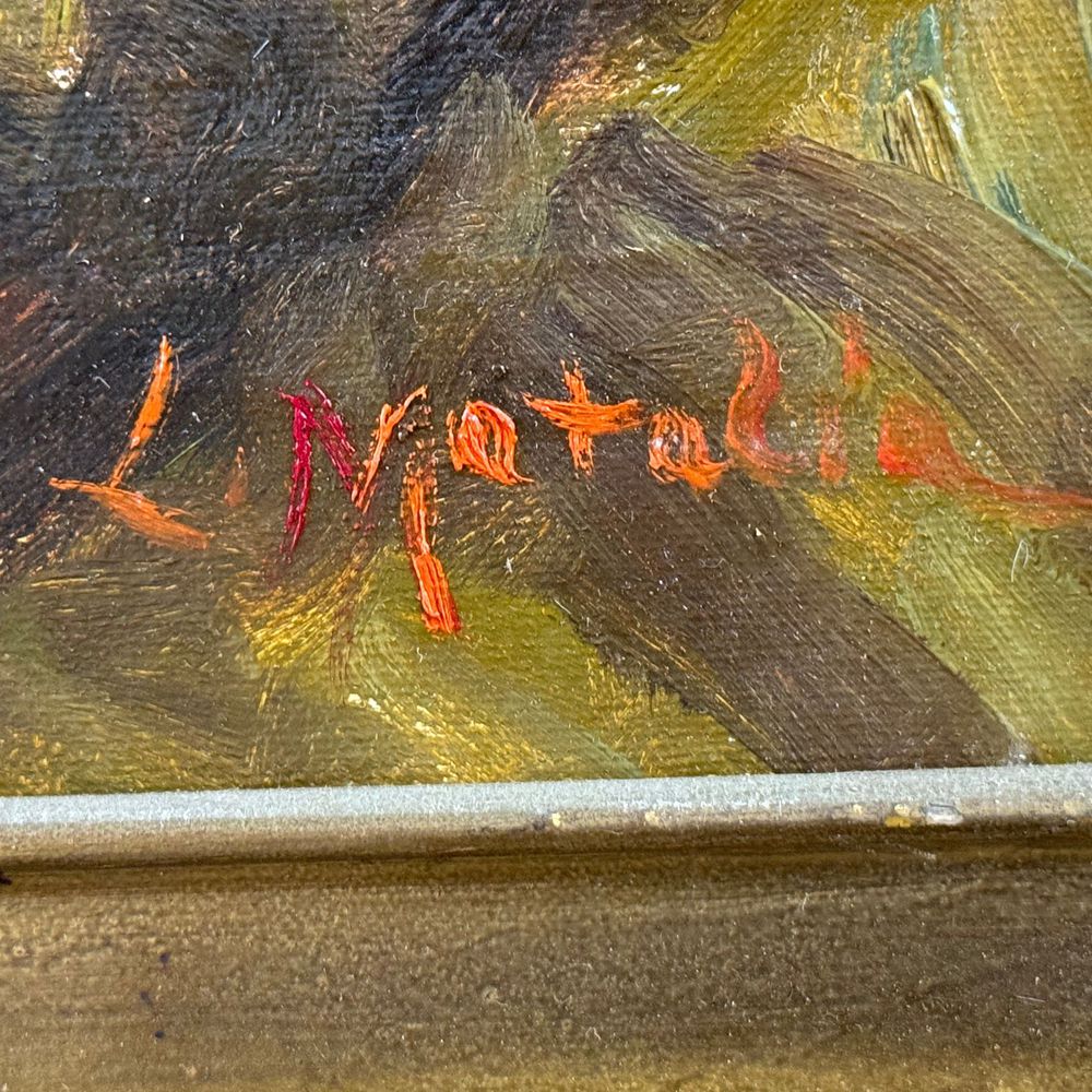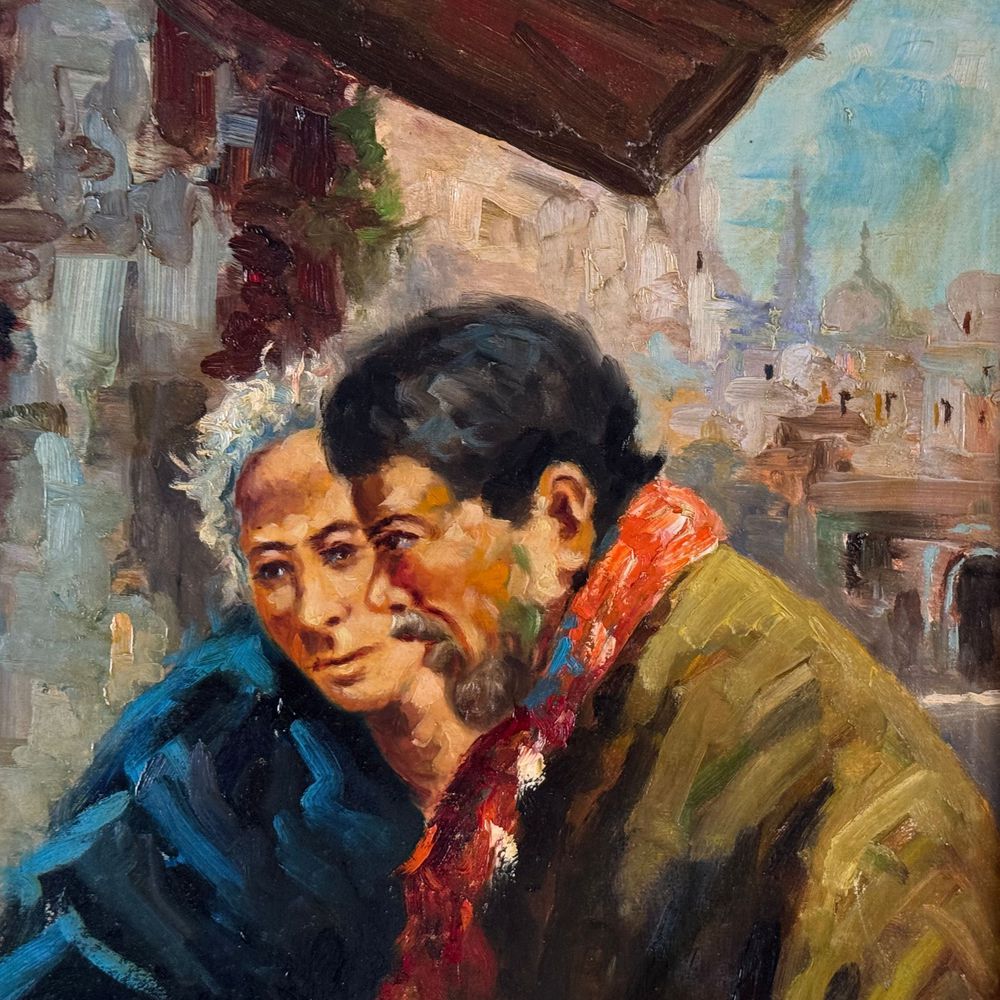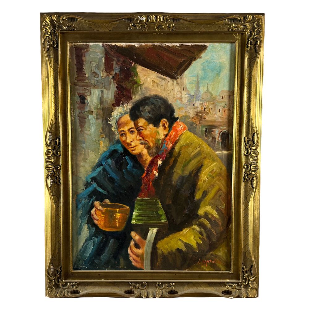 Dipinto olio su tela, periodo XX secolo scuola Italiana, raffigurante Due personaggi. Dimensioni interno cornice: 50x70 cm. Dimensioni compreso cornice: 67x87 cm. Reca firma in basso a destra da artista non identificato. Opera in buone condizioni.