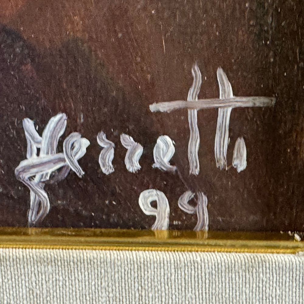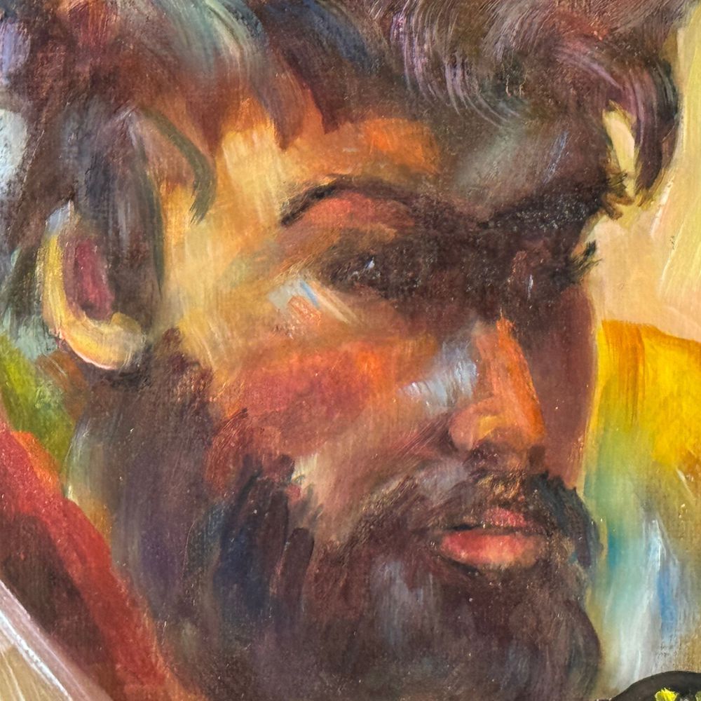 Dipinto olio su tela, periodo XX secolo scuola Italiana, raffigurante Ritratto di uomo con barba. Dimensioni interno cornice: 50x70 cm. Dimensioni compreso cornice: 74x84 cm. Reca firma in basso a destra da artista non identificato. Opera in buone condizioni.