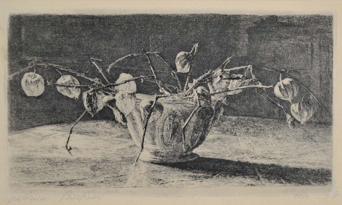 BARBISAN GIOVANNI Treviso 1914 - 1988 Alchechengi 1970 acquaforte es. 3/20 23x40 (lastra) firma in basso a sinistra data e tiratura in basso a destra Bibliografia: "Barbisan" a cura di Marco Goldin ed. Electa Milano pag. 309 tav. I152